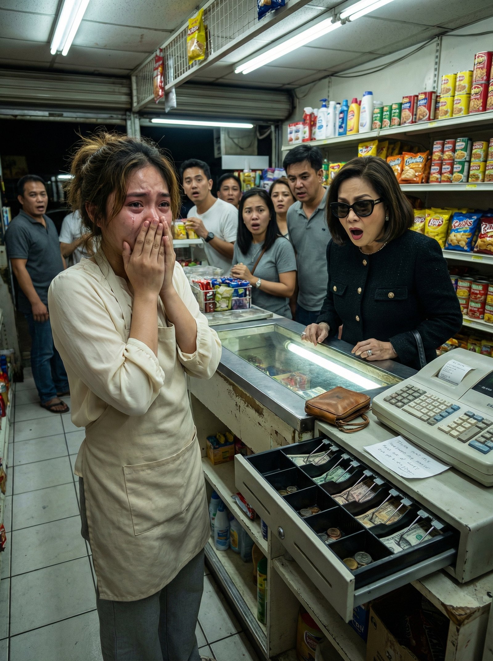 “Buksan mo ulit! Bilangin mo sa harap ko!” utos ng babae, saka sinuntok ang salamin ng counter gamit ang palad. “At kapag napatunayang kulang, ipapasara ko ang tindahang ’to!”