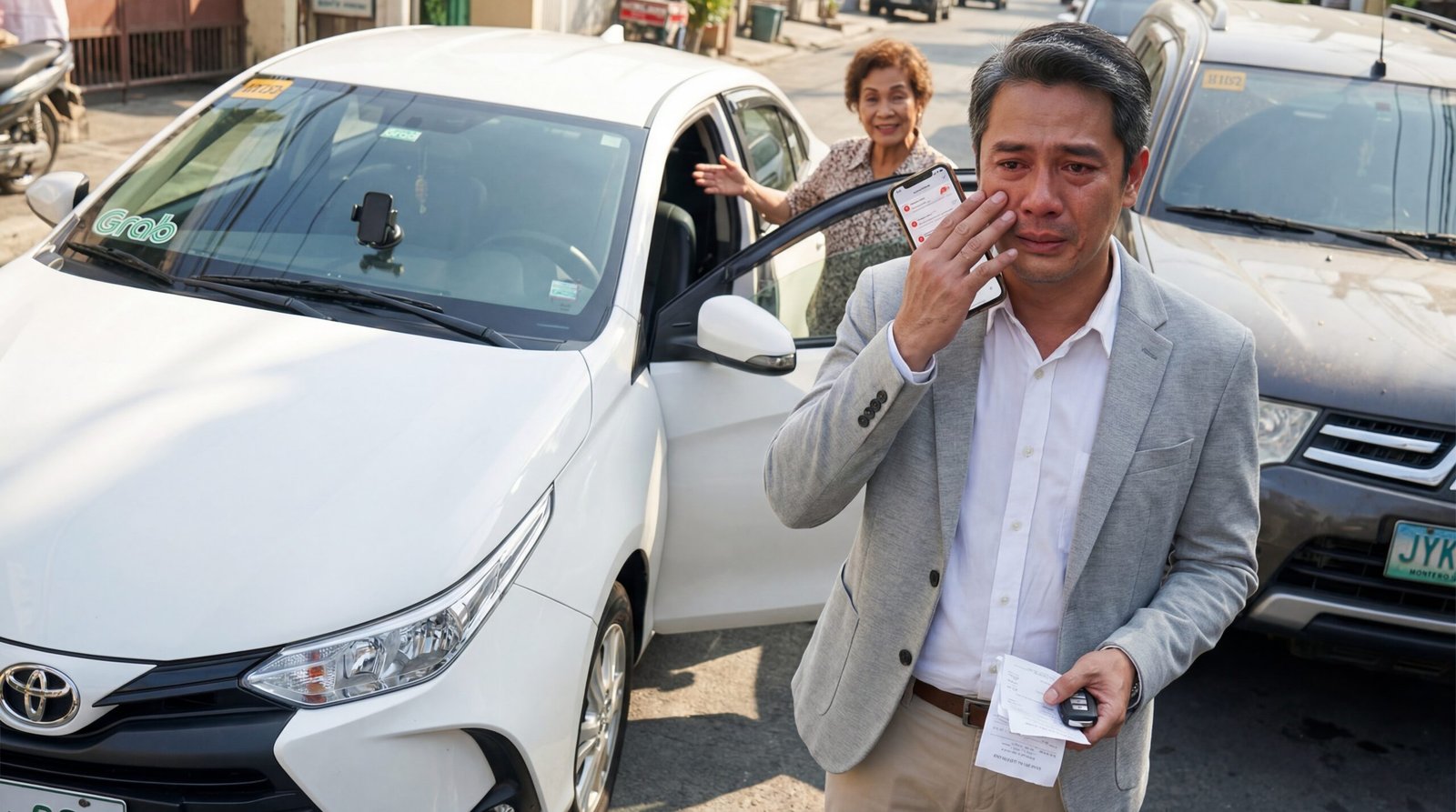 Nandun ang puting sedan—malinis sa labas pero may bakas ng araw sa hood, may phone holder sa gitna na hindi niya kinabit, at may sticker sa windshield na sumigaw sa kanya: Grab. Sa tabi, nandun ang SUV, nakaparada rin na parang laging gising. At sa salamin, may gasgas na hindi niya matandaan.