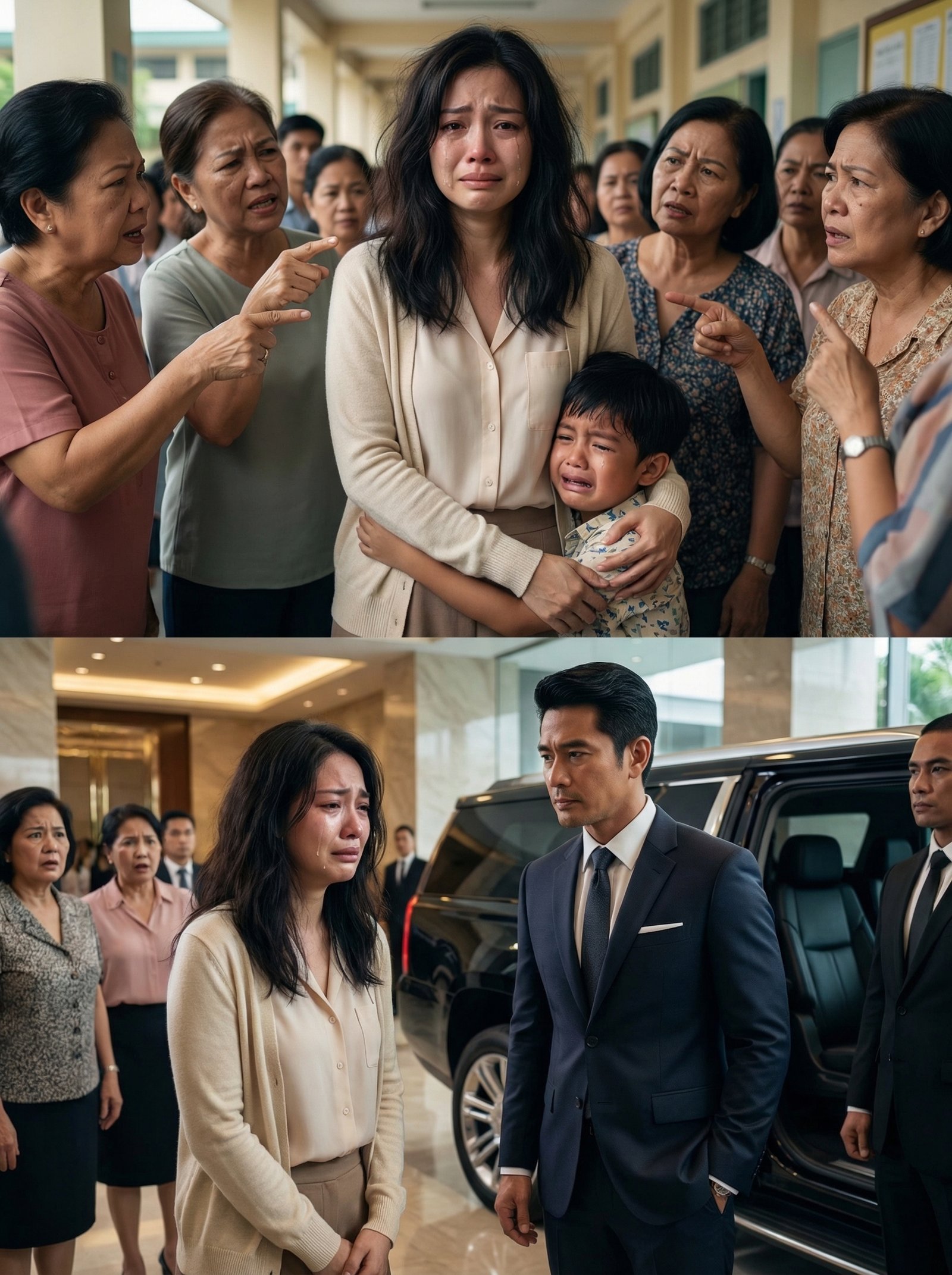 Namutla si Mira, at humigpit ang yakap niya kay Eli nang maramdamang nanginginig ito sa tabi niya. Hindi niya inaasahan na sa harap mismo ng napakaraming tao ay babanatan siya ng ganitong klaseng panghuhusga. May ilang magulang na napatigil sa paglalakad at nanood. Ang iba naman ay hindi man lang nagtangkang awatin ang tatlo. Sa loob ng ilang saglit, ang tahimik na hallway ay naging entablado ng kanyang kahihiyan. At habang umiiyak na ang kanyang anak sa takot, si Mira ay nanatiling nakatayo, maputla, tahimik, at unti-unting nilulunod ng lumang sakit na akala niya ay natutunan na niyang tiisin.
