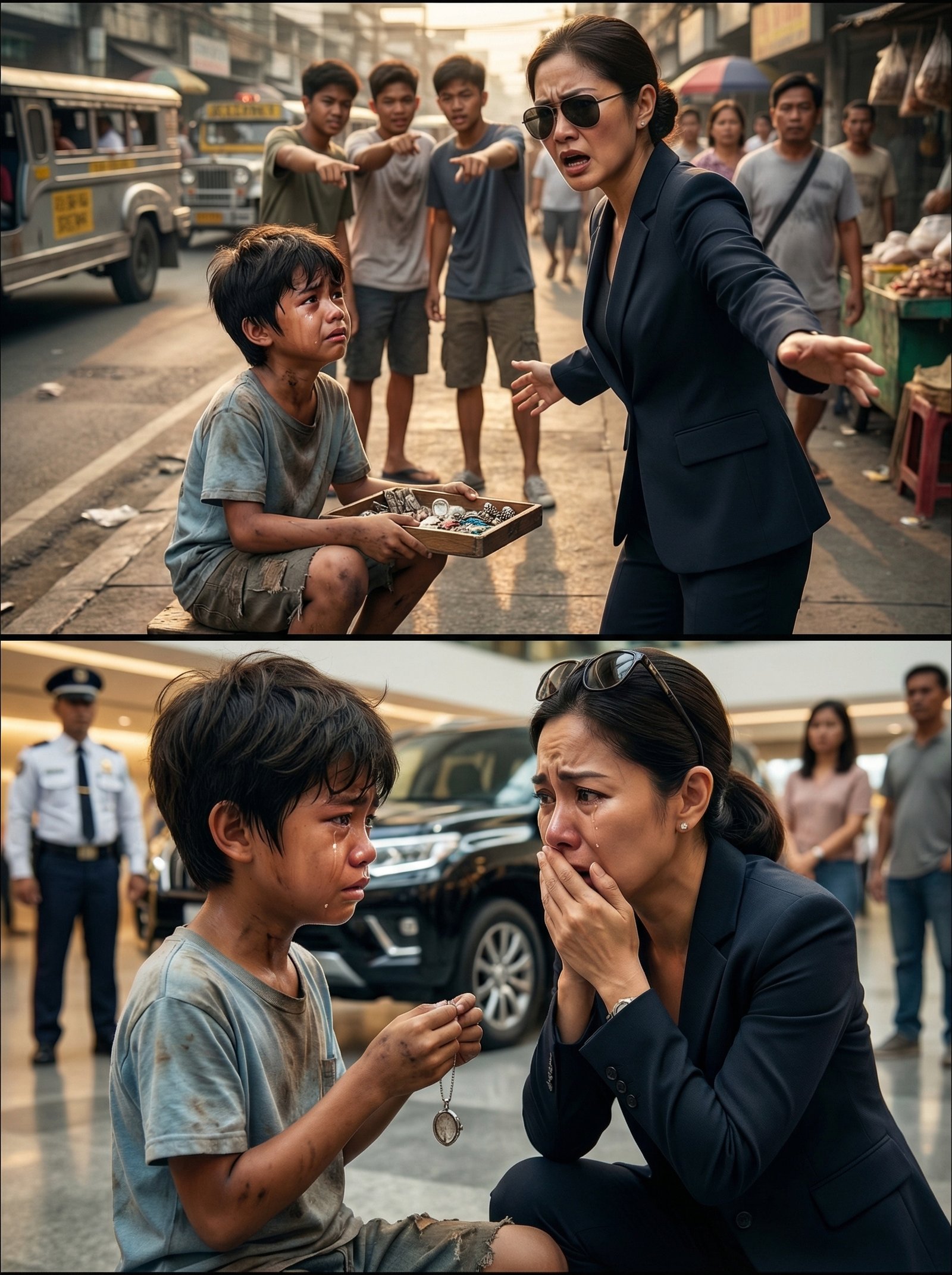 Sa araw na akala ng lahat ay isa na namang ordinaryong eksena ng pang-aapi sa gilid ng maruming kalsada ang kanilang masasaksihan, walang sinuman ang naghanda sa katotohanang babaligtad sa buong lungsod. Isang ulilang batang gusgusin, hawak ang mumurahing tray ng paninda at pilit pinipigilan ang luha habang tinutulak, tinatawanan, at pinapahiya sa harap ng maraming taong walang lakas ng loob makialam. Ngunit sa gitna ng maingay na lansangan, huminto ang isang mamahaling sasakyan, bumaba ang isang babaeng CEO na sanay utusan ang mundo, at walang pag-aalinlangang tumayo sa harap ng batang hindi niya raw kilala. Sa unang tingin, isa lang iyong sandali ng awa. Isang mayamang babaeng naantig sa hirap ng lansangan. Pero makalipas ang ilang minuto, nang mahawakan ng bata ang isang lumang kuwintas at mabigkas ang pangalang matagal nang ibinaon sa limot, mabubuksan ang isang lihim na hindi lamang yayanig sa mga nanonood, kundi dudurog at bubuo sa puso ng isang inang hindi alam na sa buong panahong hinahanap siya ng tadhana, nasa kalsada lang pala ang batang minsan niyang ipinaglaban at sapilitang nawala sa mga bisig niya.