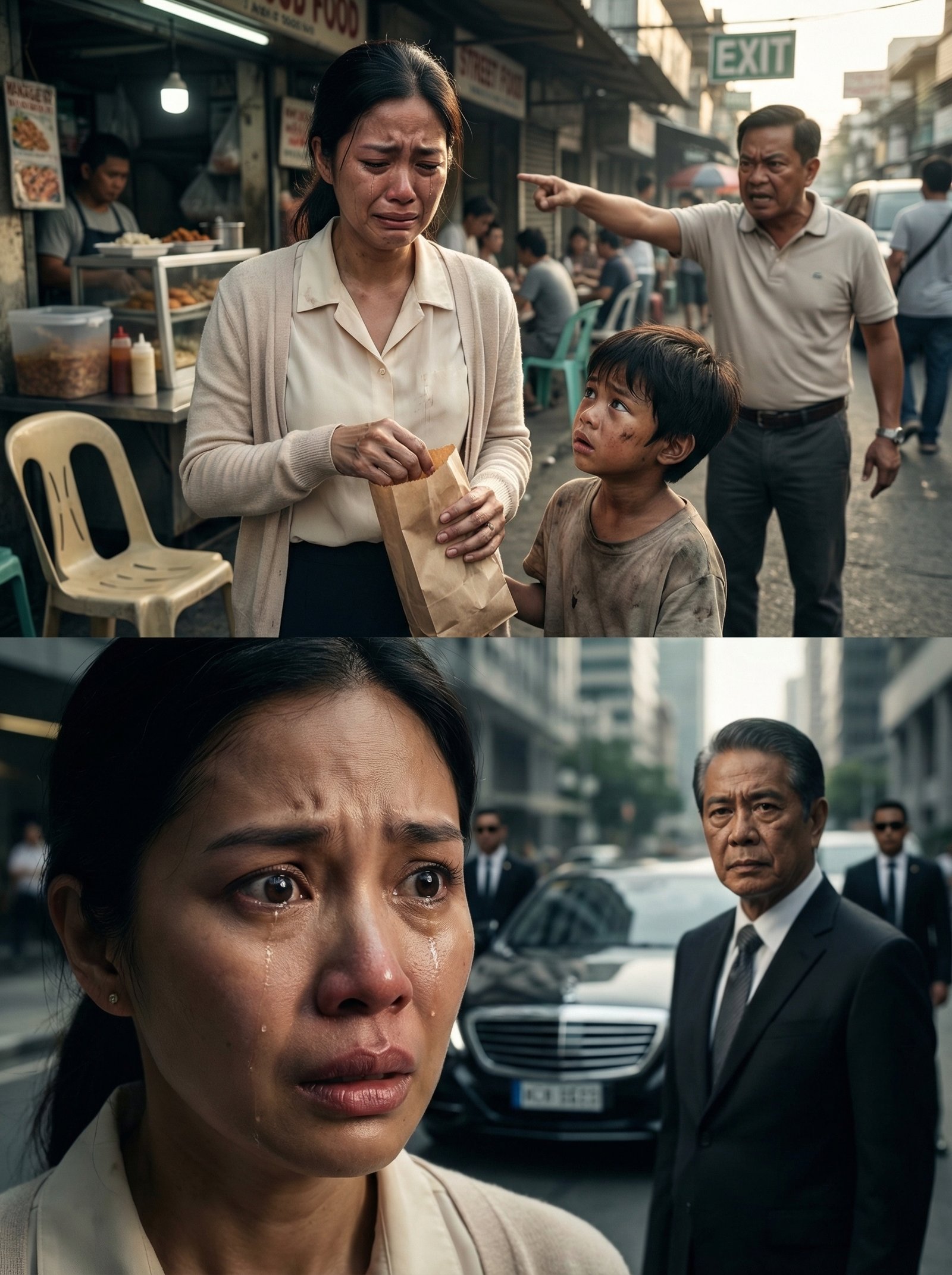 Lumabas siya ng karinderya na hawak ang maliit na bag ng kanyang gamit. Nanginginig ang kanyang tuhod, at bawat hakbang ay tila mas bumibigat habang naririnig niya pa rin sa likod ang boses ng amo niyang paulit-ulit siyang minamaliit. Pagdating niya sa gilid ng eskinita, doon siya tuluyang napaupo at umiyak nang tahimik. Pilit niyang tinatakpan ang bibig para hindi marinig ng mga dumaraan, ngunit hindi na niya mapigilan. Pakiramdam niya ay ipinagkanulo siya ng mundo sa paggawa ng tama. Ilang taon siyang naging tapat, masipag, at matiisin, pero isang sandali lang ng kabutihan ang kinailangan para itapon ang lahat ng pinaghirapan niya.
