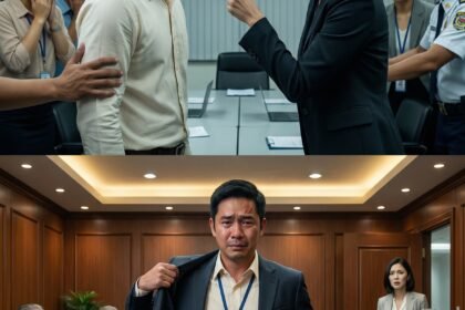 Sa ilalim ng puting ilaw ng fluorescent sa isang malamig na meeting room, may isang lalaking umiiyak habang nakatayo sa harap ng mahabang lamesa—at may isang babaeng manager na nakaturo ang daliri sa ...