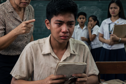 ANG LUHA SA HARAP NG PISARA Sa ilalim ng malamlam na ilaw ng fluorescent, sa loob ng silid-aralan na may lumang pisara at amoy ng chalk, may isang batang lalaking nakaupo sa kahoy na armchair desk—yak...