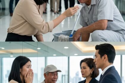 Sa gitna ng malamig at makintab na hallway ng isang malaking korporasyon, isang matandang janitor ang napaupo sa sahig habang nanginginig ang kanyang mga kamay at umaagos ang luha sa pisngi—sa harap n...