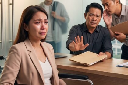 Sa loob ng isang malamig na conference room na napapalibutan ng salamin, isang babae ang nakaupo sa wheelchair, nanginginig ang balikat habang tumutulo ang luha sa pisngi niya. Suot niya ang beige na ...