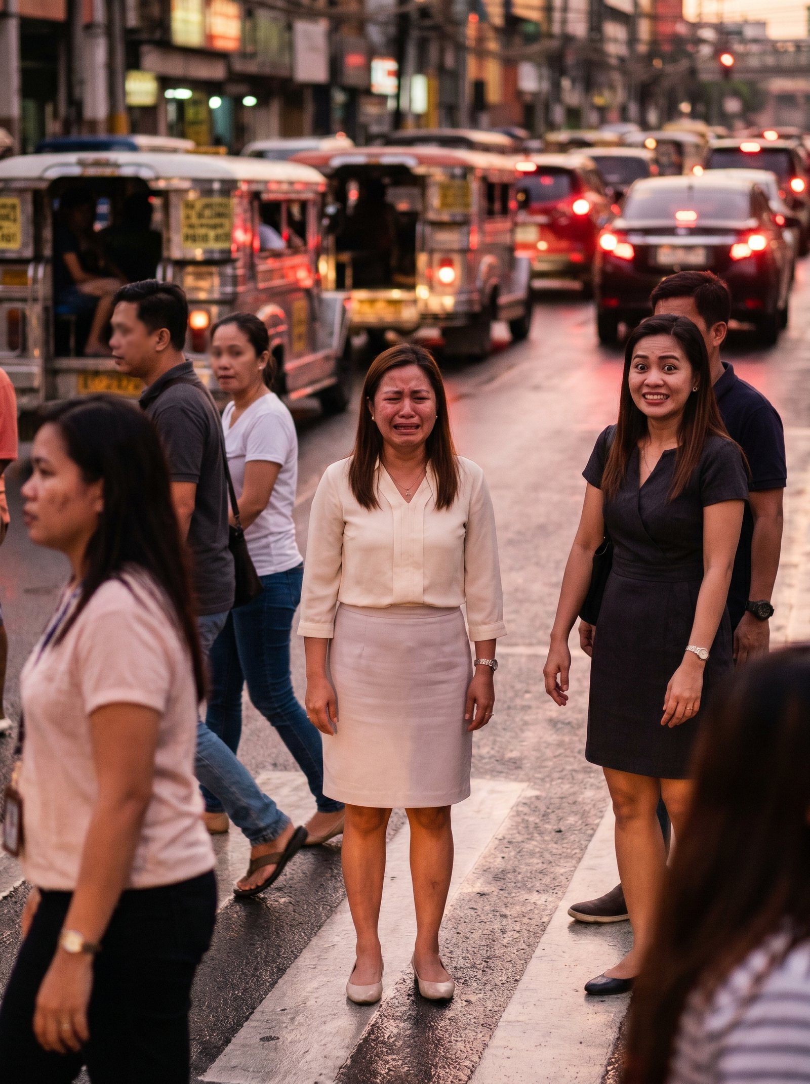Hindi na niya alam kung paano siya napahinto sa gitna ng pedestrian lane. Ang alam lang ni Mara, isang saglit kanina ay kasama pa niya ang mga kasamahan niya sa opisina, naglalakad sa basang kalsada matapos ang ulan, habang nagsisikip ang trapiko at nagliliwanag ang pulang preno ng mga sasakyan at jeep sa kahabaan ng daan. Sa susunod na sandali, hindi na siya makagalaw. Nakatayo siya roon sa puting guhit ng tawiran, nakasuot ng kremang blouse at maputlang palda, nanginginig ang labi, namumula ang mga mata, at unti-unting bumibigay ang boses sa gitna ng maingay na lungsod. Sa paligid niya, may mga naglalakad na napahinto. May mga taong napalingon. May mga mukhang hindi kilala, at may mga mukhang kilalang-kilala niya. Pero iisa lang ang dahilan kung bakit siya nanlamig. Nasa harap niya si Via.