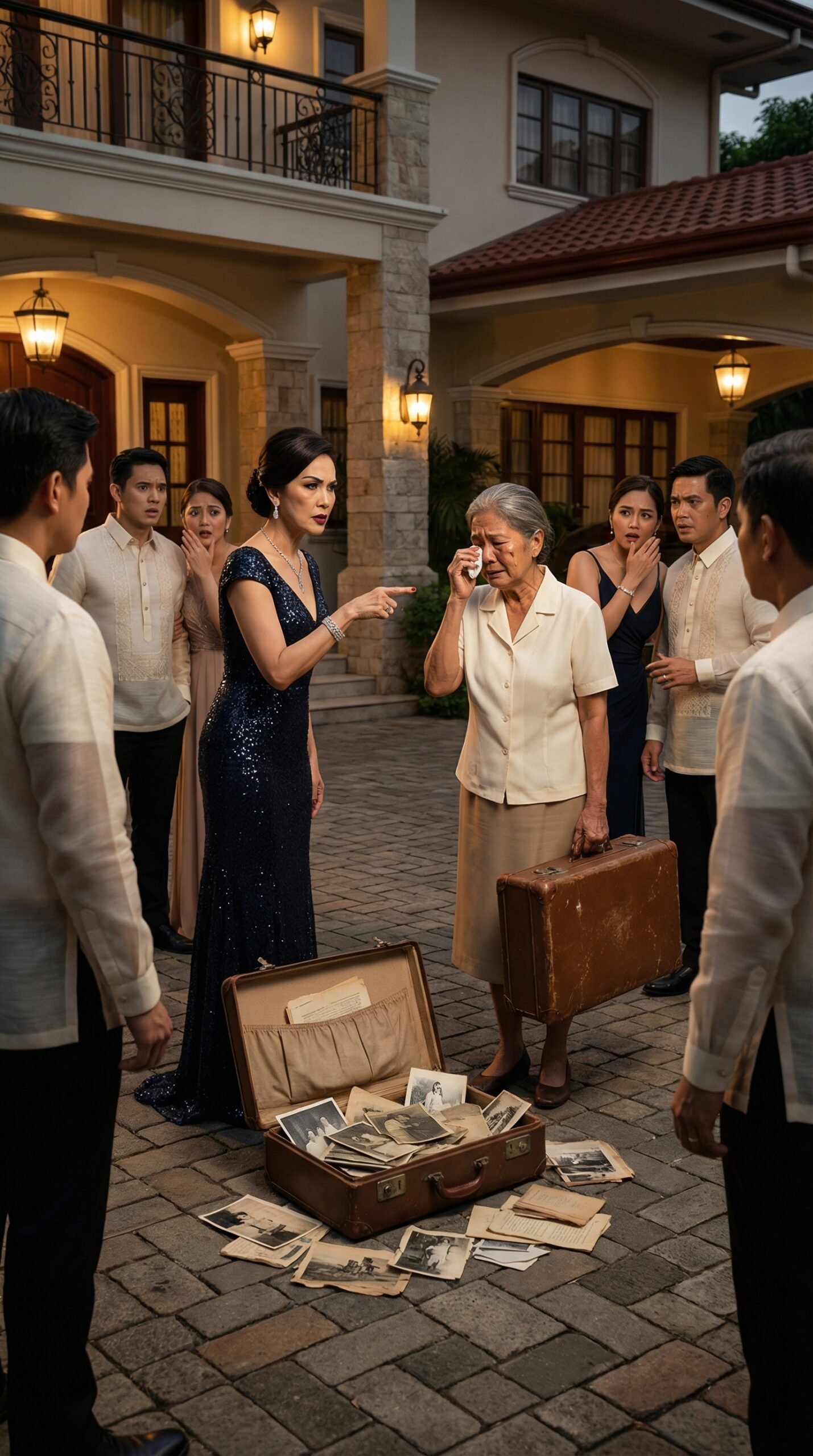 Isang babaeng tila walang puwang sa karangyaan ng gabing iyon ang malamig na pinaikot sa likod ng mansyon ng isang matapobreng social climber dahil lamang sa dala niyang luma at mukhang walang halagang maleta, habang ang mga bisitang nakasaksi ay unti-unting napuno ng panghuhusga at naniwalang isa lamang siyang kahihiyang dapat ilayo sa mamahaling pagtitipon, ngunit walang sinuman ang naghinalang ang lumang maletang iyon ay may kinikimkim na katotohanang sapat upang wasakin ang mga ngiti, yabang, at mga kasinungalingang maingat na itinayo sa loob ng marangyang bahay na iyon—at nang tuluyang buksan ito sa harap ng lahat, biglang nag-iba ang ihip ng gabi, nanlaki ang mga mata ng mga bisita, at ang babaeng kanina’y itinuring na walang halaga ay naging sentro ng isang rebelasyong sumabog at nagpayanig sa buong mansyon.