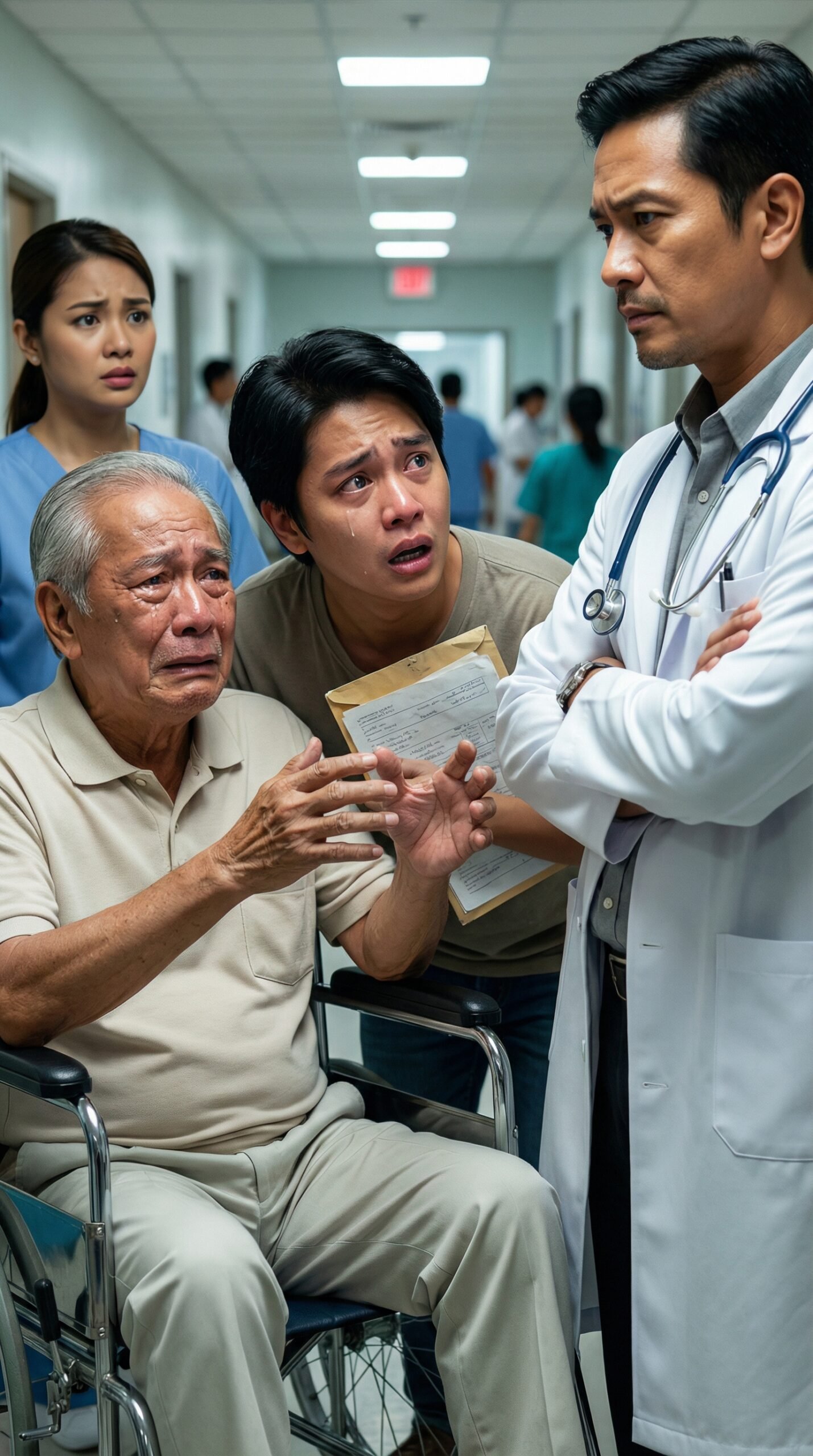 May mga sandaling ang isang pasilyo sa ospital ay nagiging hukuman—walang martilyo ng huwes, walang saksi sa entablado, pero ang bawat tingin ay hatol at ang bawat katahimikan ay parang sentensya. Sa ilalim ng maputlang ilaw ng fluorescent, sa gitna ng amoy ng antiseptic at malamig na hangin ng aircon, may isang matandang lalaking nakaupo sa wheelchair na parang hinihila ng bigat ng mundo ang dibdib niya pababa. Nanginginig ang labi, basa ang pisngi, at ang mga kamay na sanay humawak ng araro o manibela noon ay ngayon ay nangingapa sa hangin, tila humihingi ng pang-unawa.