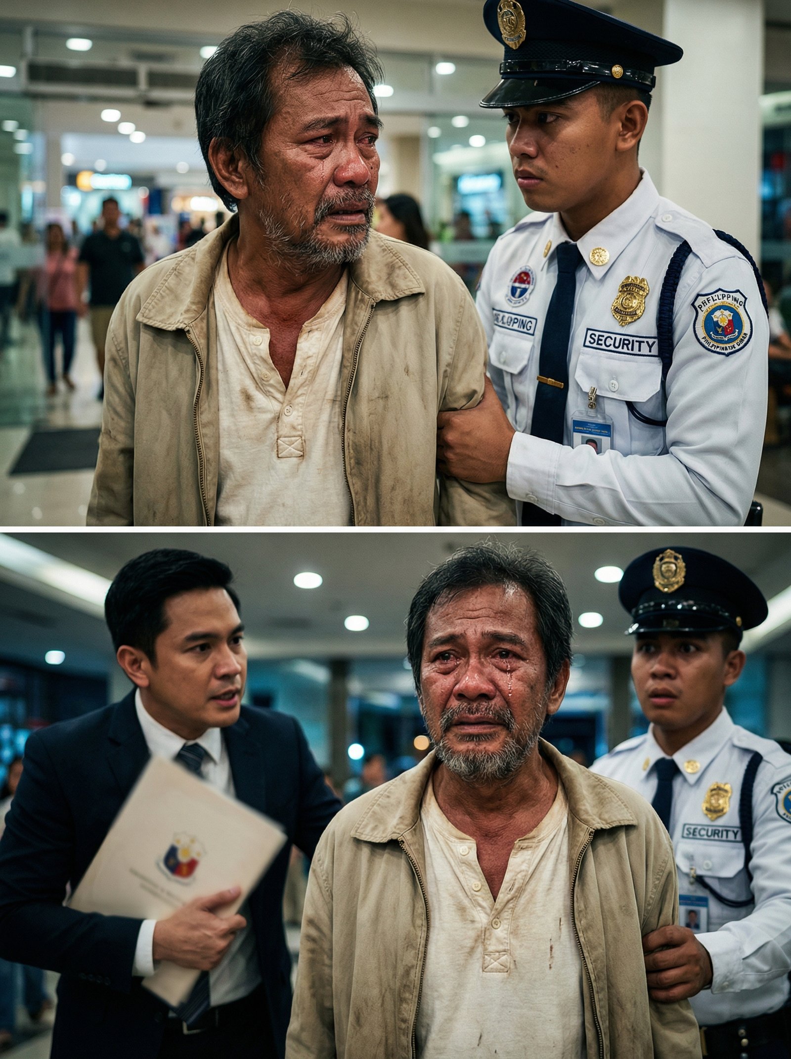 Sa entrance ng mall, palaging may tunog—mga yabag sa makintab na sahig, ingay ng usapan, malayong tawa, at mahinang beep ng mga scanner. Sa likod, kumikislap ang mga ilaw na puti, parang laging malinis ang mundo rito. Pero sa gitna ng “linis,” may isang eksenang marumi sa konsensya: isang lalaking nasa edad singkwenta o sisenta, gusot ang buhok, makapal ang balbas, suot ang lumang beige na jacket at kupas na damit. Kita sa mukha niya ang pagod ng panahon, at sa mata niya ang takot ng taong sanay mapagkamalan.