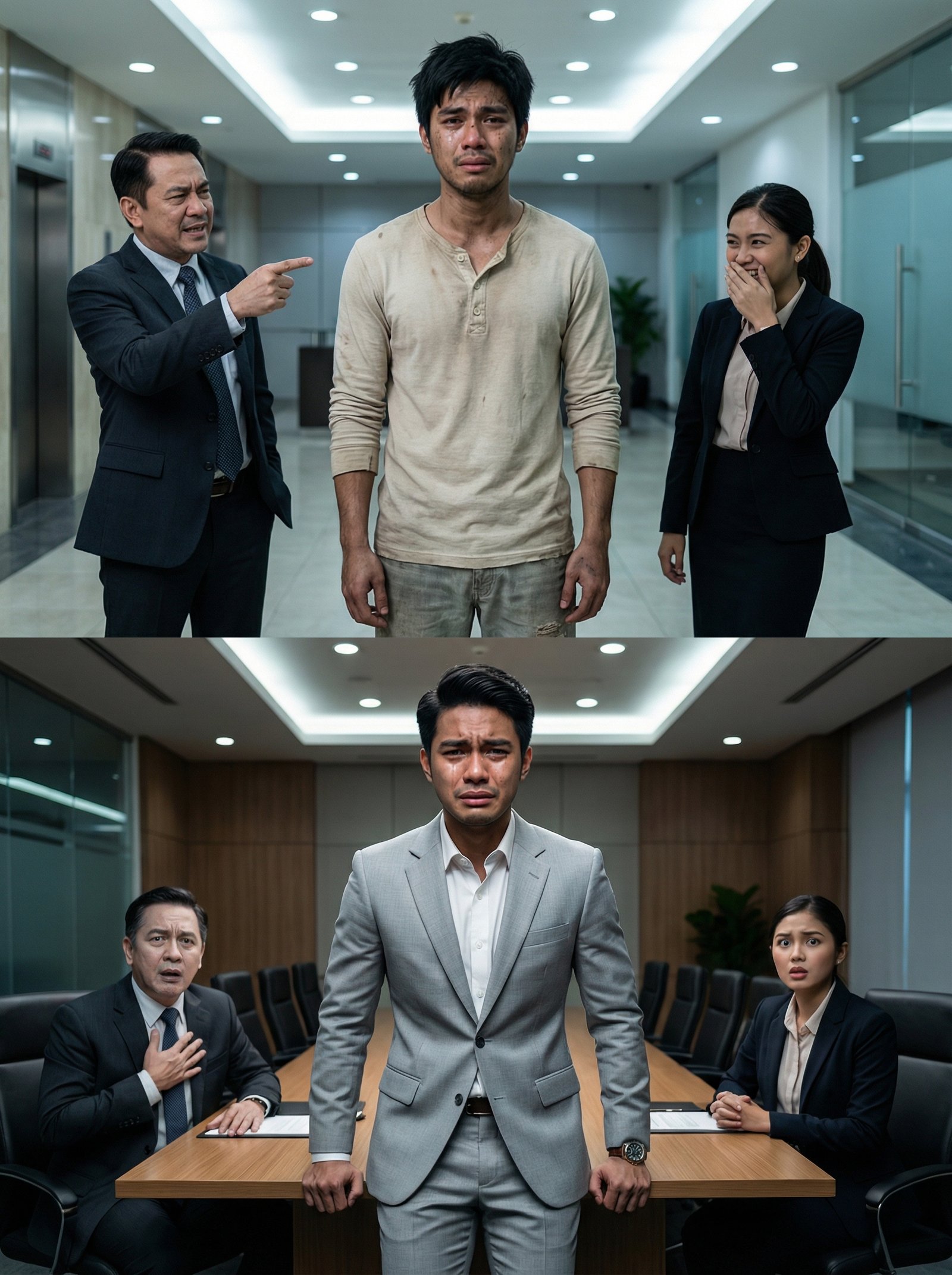 Sa isang marangyang gusali sa gitna ng lungsod, kung saan ang sahig ay makintab at ang bawat empleyado ay nakaayos sa mamahaling kasuotan, may isang lalaking pumasok na tila hindi nababagay sa lugar. Gusgusin ang damit. Marumi ang sapatos. Pagod ang mukha. At sa loob lamang ng ilang minuto, siya ay tinawag na “pulubi.” Ngunit ang hindi alam ng lahat—ang lalaking kanilang minamaliit ay ang mismong tagapagmana ng bilyon-bilyong kumpanya na kanilang pinaglilingkuran.