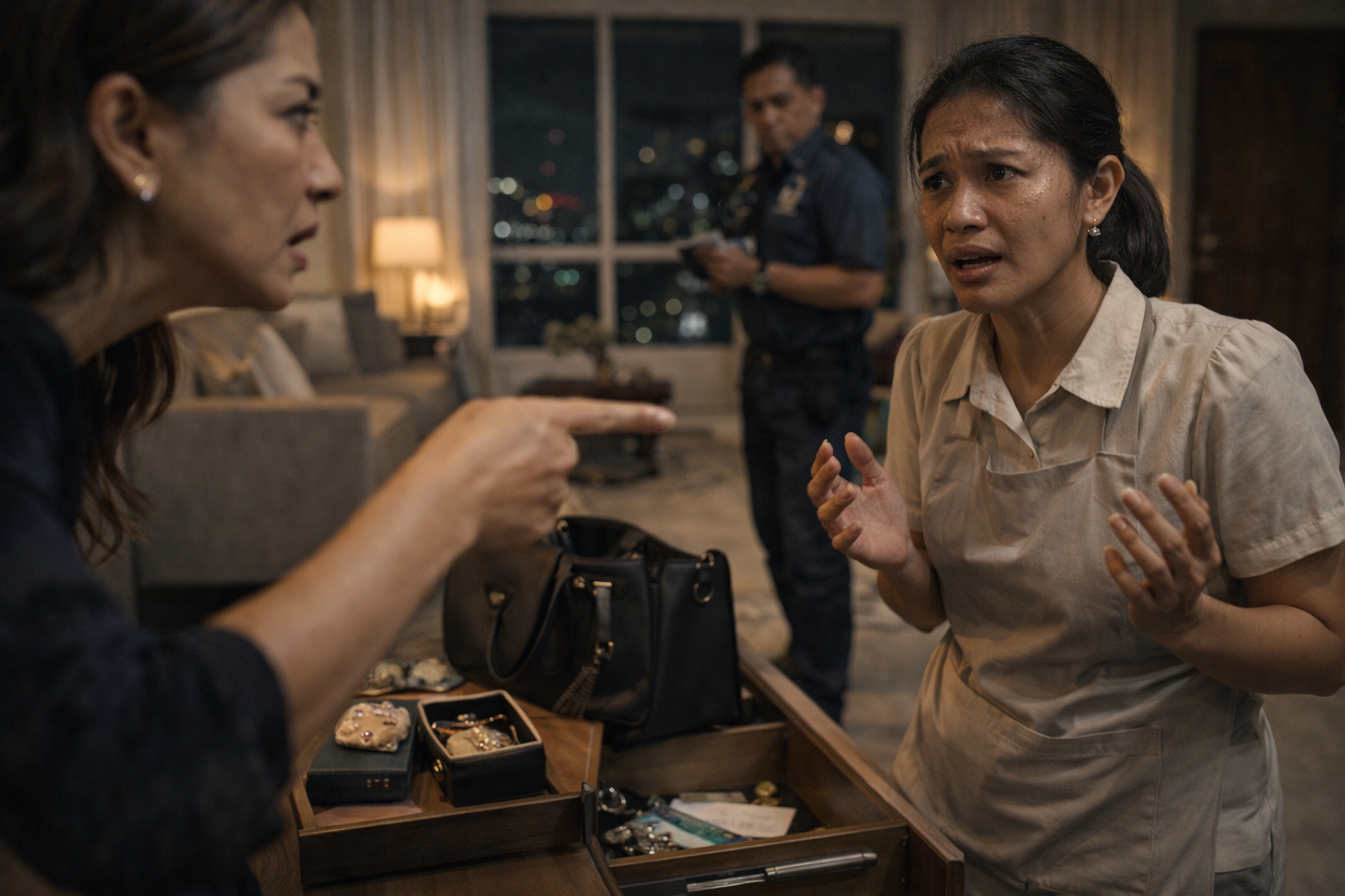 “Ano ‘to?” sigaw ng amo, hindi man literal na sigaw, pero matalim. “Bakit bukas ‘yung drawer ko? Bakit wala ‘yung relo? ‘Yung bracelet? ‘Yung singsing ng nanay ko?” Sabay turo sa kahon ng alahas na nakabukas. “Ikaw lang ang may access dito. Ikaw lang ang andito!” Ang bawat “ikaw” parang pako sa dibdib ng katulong. Hindi siya sumasagot nang malakas. Hindi dahil guilty. Kundi dahil alam niyang kapag tumaas ang boses niya, sasabihin nilang bastos siya. Sa mundong may amo at katulong, kahit inosente ka, kailangan mong maging mahinahon—kahit nasasaktan ka na.