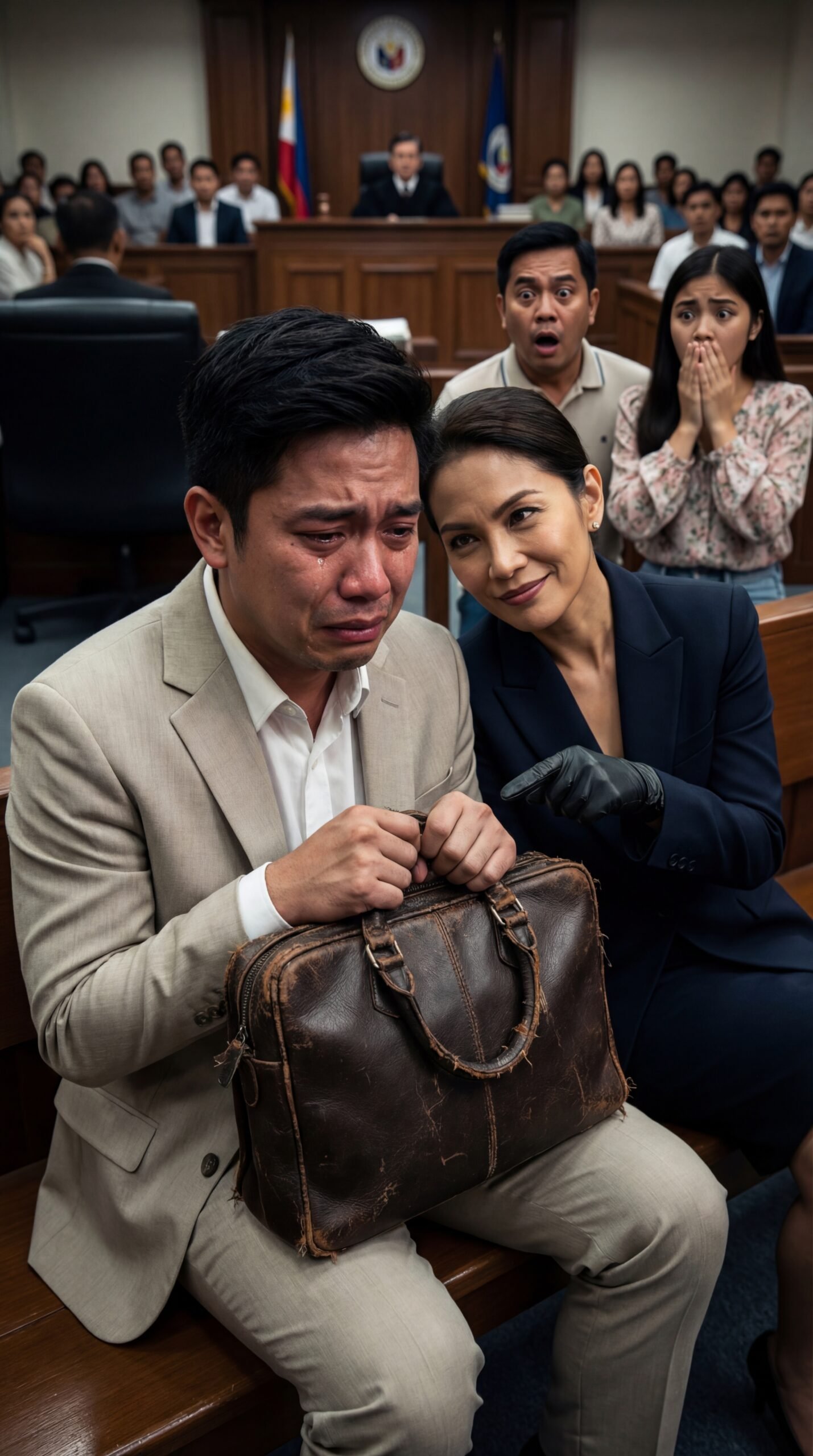 May mga sandaling kahit sa loob ng korte—kung saan dapat pantay ang lahat—may mga matang nanlalait pa rin, at may mga ngiting parang kutsilyong dahan-dahang humihiwa sa dignidad. Sa araw na iyon, sa harap ng madilim na kahoy na mga dingding, sa ilalim ng selyo ng Republika, at sa harap ng hukom na nakaupo sa mataas na upuan, may isang lalaking halos hindi na makahinga sa bigat ng kaba habang mahigpit na yakap ang isang lumang bag na halatang pinagdaanan ng panahon.