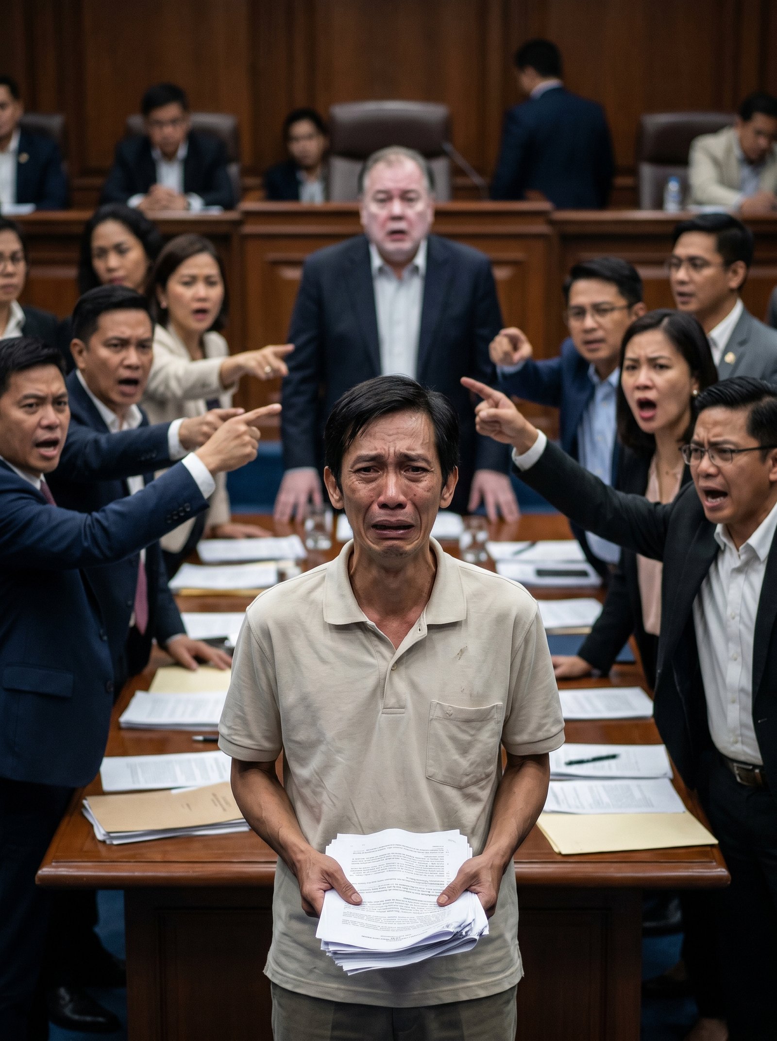 Pero ngayon, nasa gitna siya ng mahabang mesa sa session hall, suot ang lumang puting polo, hawak ang makapal na kumpol ng papeles, at hindi niya alam kung alin ang unang bibigay—ang tuhod niya o ang mukha niyang matagal niyang iningatang huwag mabasag sa harap ng iba.