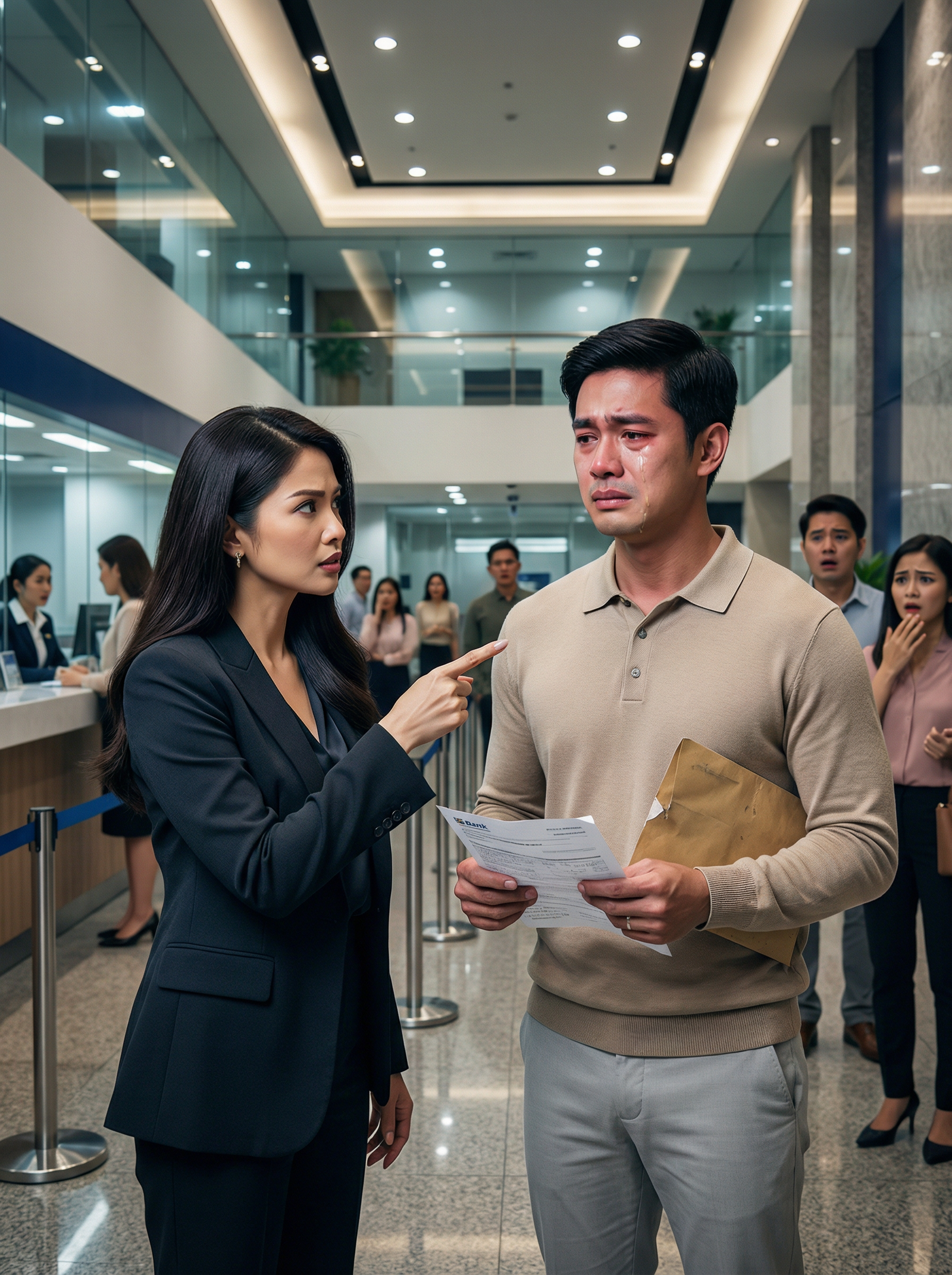 Hindi na halos maramdaman ni Marco ang mga daliri niya sa sobrang higpit ng pagkakahawak sa brown envelope at sa mga papel na unti-unti nang nalulukot sa palad niya. Sa gitna ng malawak na lobby ng bangko, sa ilalim ng mapuputing ilaw at kisameng parang walang katapusan, nakatayo siyang tahimik habang ang luha ay dahan-dahang bumabakat sa pisngi niya. Nasa harap niya ang babaeng kanina pa malakas ang boses—si Vanessa Montenegro, anak ng isang kilalang negosyante, mamahalin ang blazer, matalim ang titig, at sanay magsalita na parang bawat tao sa paligid niya ay puwedeng utusan, puwedeng tabigin, puwedeng ibaba. Nakaturo ang daliri nito sa dibdib ni Marco na para bang isang krimen ang simpleng pagtayo niya roon. Sa likod nila, napatigil ang mga empleyado. Ang ilang kliyente, napabuntong-hininga. Ang iba, napatingin nang may awa sa lalaking suot lang ang simpleng polo at may hawak na sobre na tila hindi na alam kung lalaban pa ba o aalis na lang.