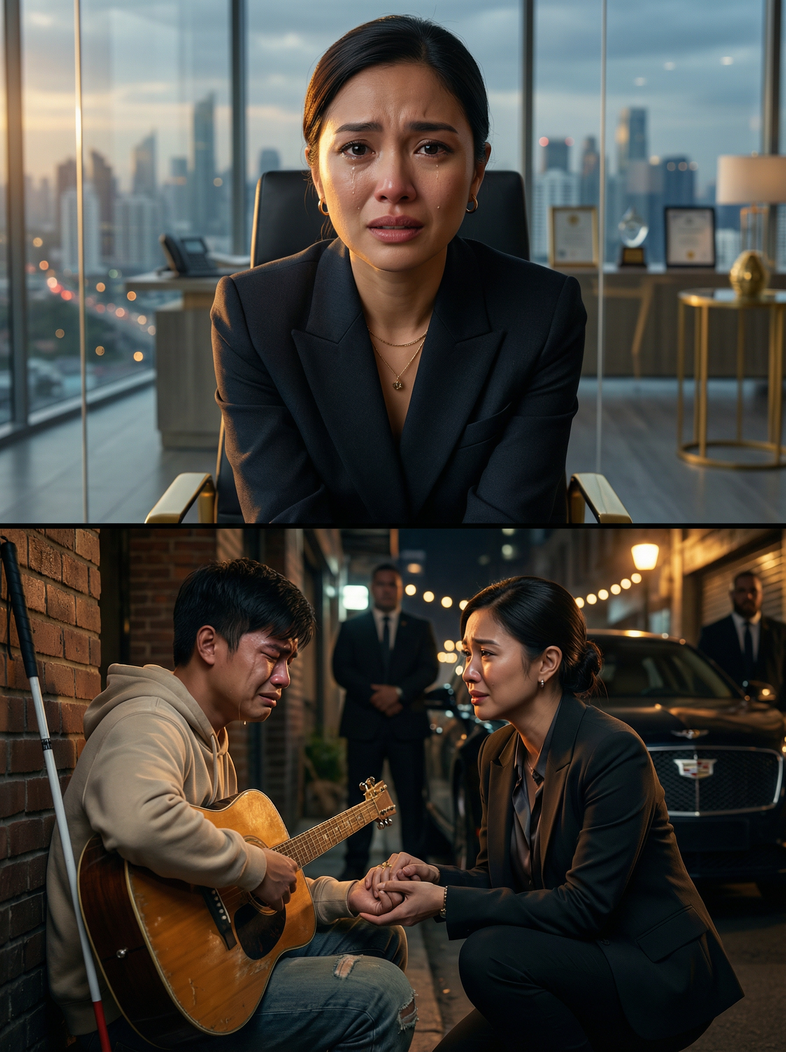 Ang dahilan ng luha ay hindi simpleng pagod. Kanina lang, sa meeting room, pinirmahan niya ang isang dokumentong alam niyang sisira sa buhay ng maraming tao—pagbebenta ng lumang gusali sa may eskinita para gawing parking at bagong development. Sa papel, business decision. Sa realidad, may mga taong mawawalan ng tahanan, may mga tindahan na mawawala, at may mga pangarap na matutulak sa dilim. Pero ang mas matindi: sa mismong gusaling iyon, may isang taong nagtatali ng musika sa gabi—isang bulag na musikong palaging naririnig niya mula sa kotse kapag dumadaan siya pauwi. Hindi niya alam kung bakit, pero sa tuwing naririnig niya ang gitara, parang may bahaging sa kanya ang nabubuhay—bahaging matagal nang pinatay ng corporate world.