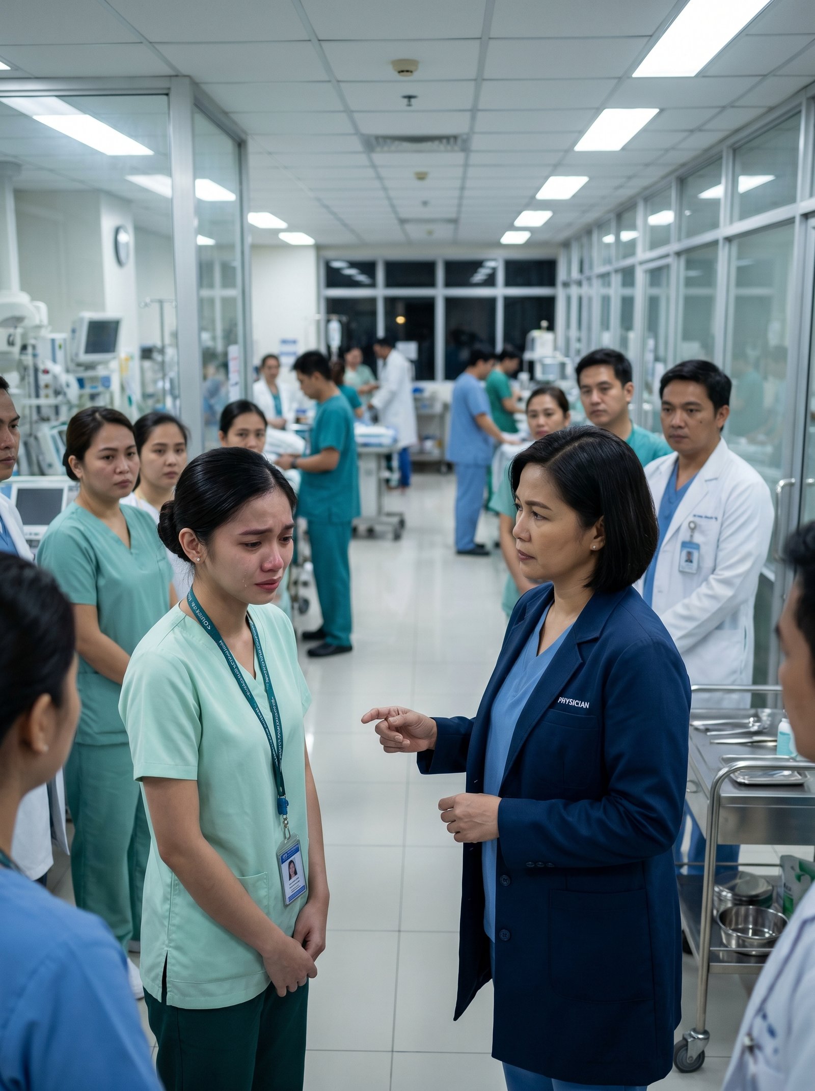 Hindi na maalala ni Lea kung ilang beses niyang sinabi ang “Pasensya na po, Doc.” Ang alam lang niya, nakatayo siya sa gitna ng malamig at maliwanag na pasilyo ng ospital, suot ang berdeng scrubs at ID na halos hindi na niya maitaas sa sobrang panginginig, habang ang luha sa mga mata niya ay pilit niyang nilulunok para hindi tuluyang bumagsak sa harap ng lahat.