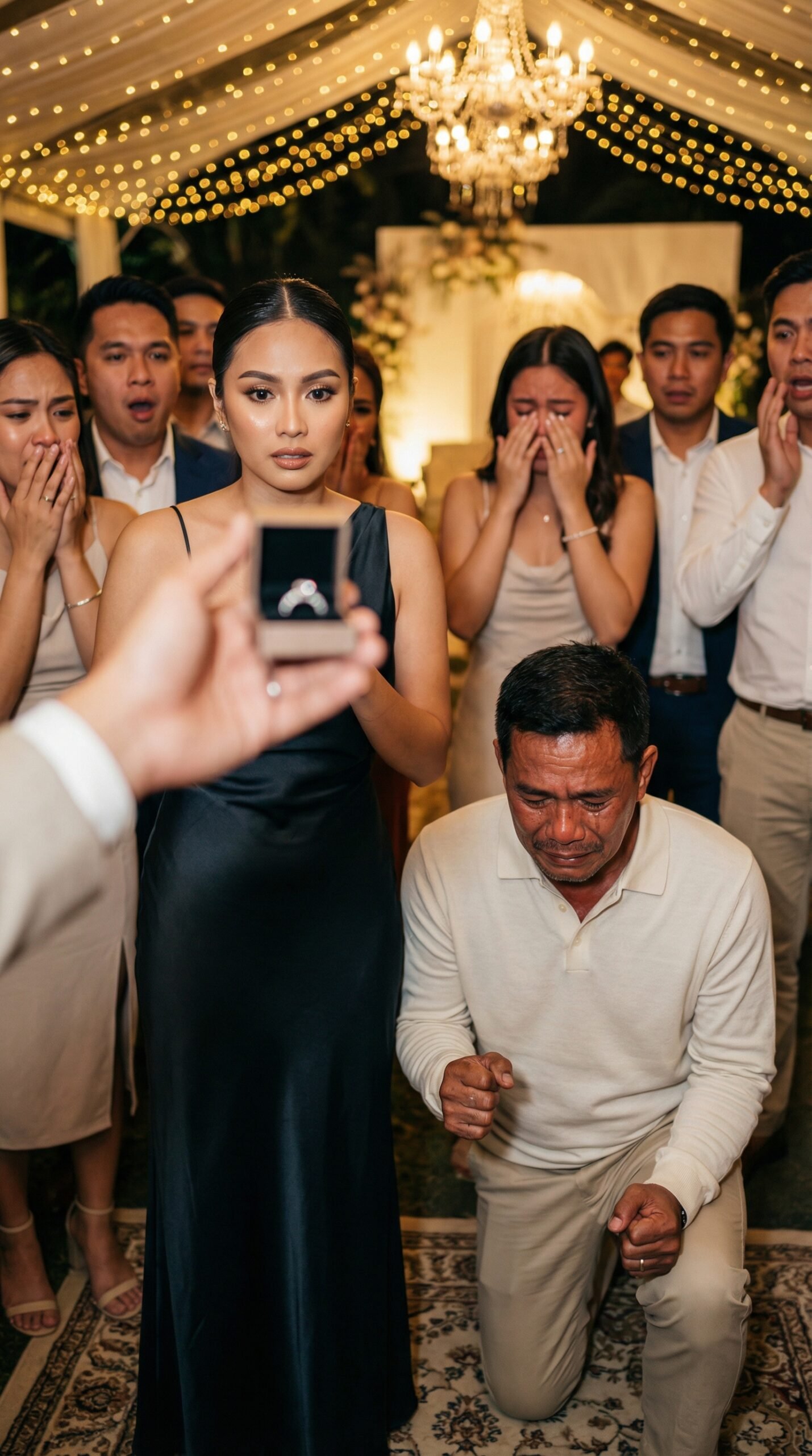 Sa halip, humugot si Adrian ng isang maliit na itim na kahon ng singsing at binuksan iyon sa harap ng mga bisita—walang laman.