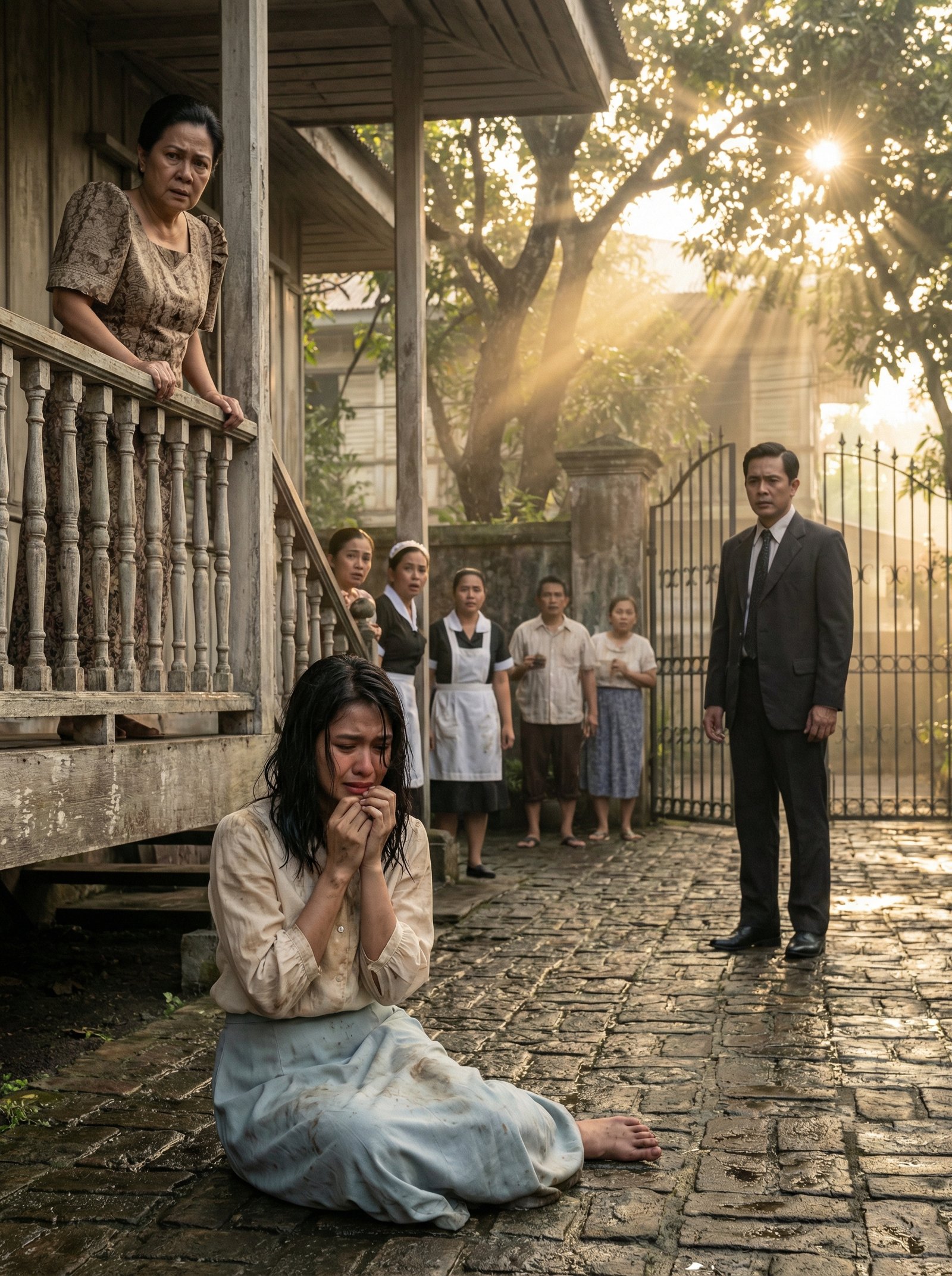 Nanginginig pa rin ang tuhod niya. Putik pa rin ang laylayan ng saya niya. Hubad ang paa niya sa malamig na bato. Pero sa mismong sandaling iyon, parang ang buong bakuran ang siyang nawalan ng tatag.