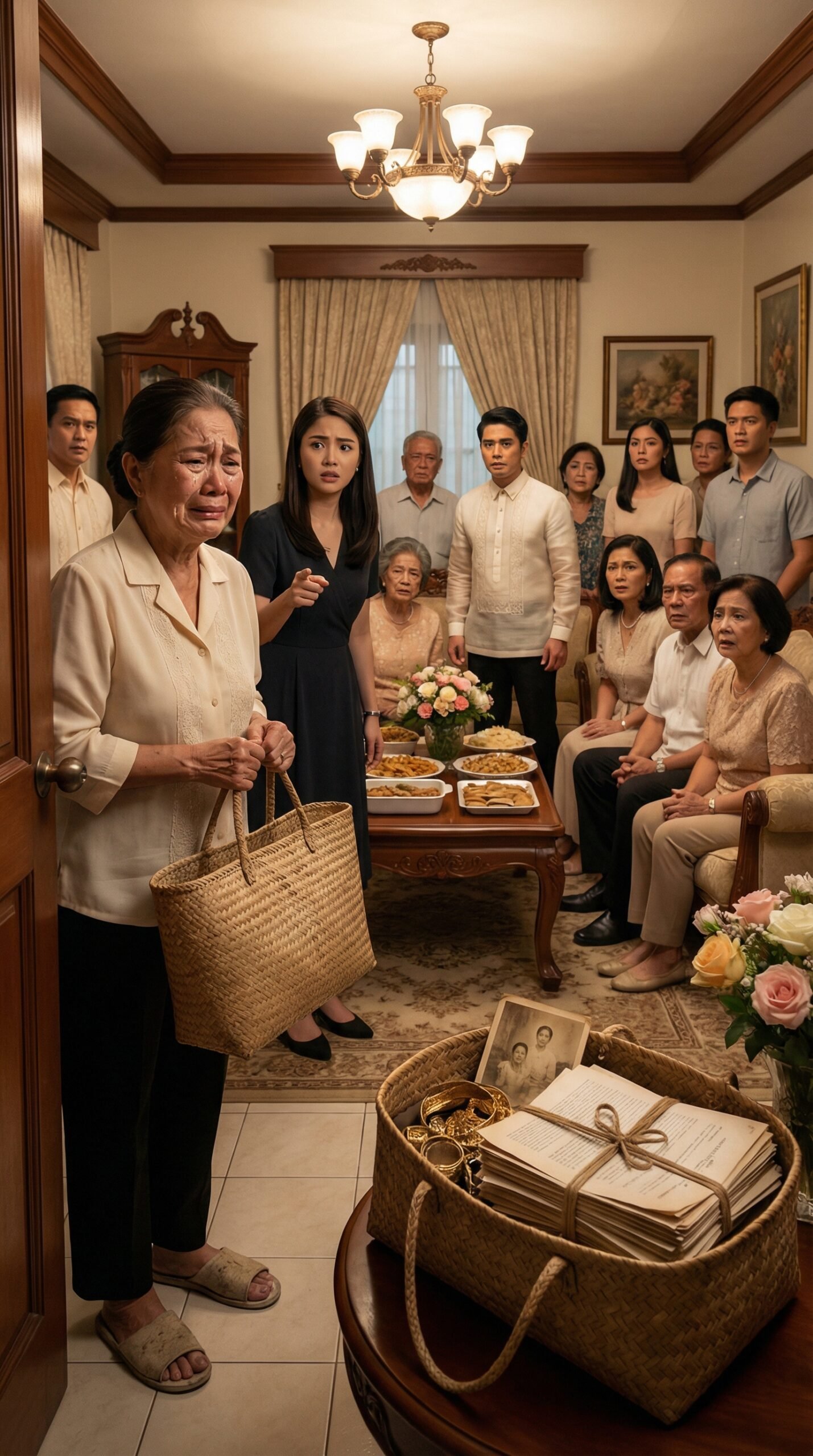 Sa paa niya ay kupas na tsinelas. Sa kamay niya ay isang lumang bayong na tila hindi bagay sa makinang na sala, mamahaling kurtina, at mga matang sanay sa anyo bago sa laman.
