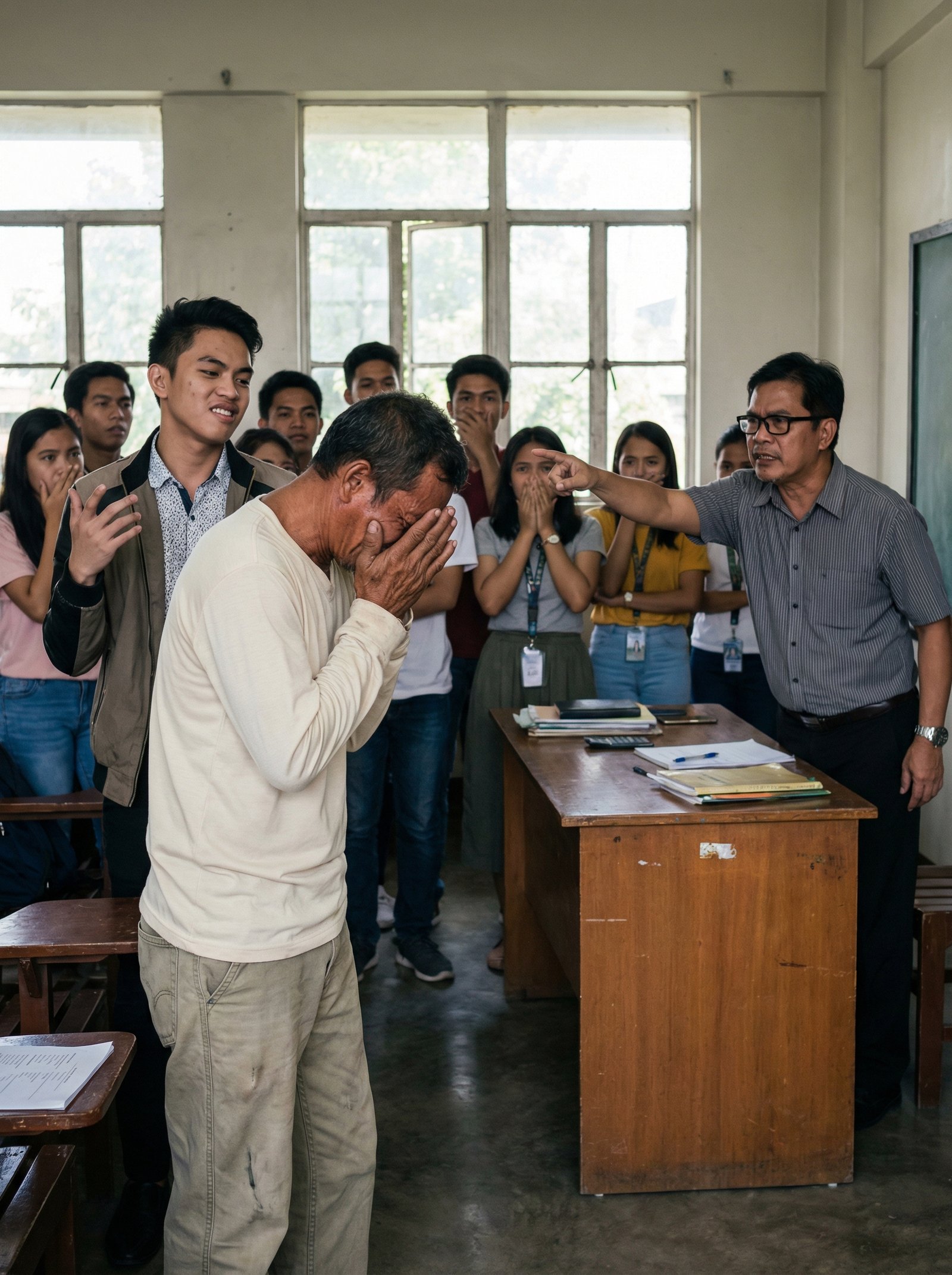 Pati ang mga estudyanteng kanina’y natawa, nakatayo na lang sa likod na parang biglang naghanap ng paraan para maging maliit.