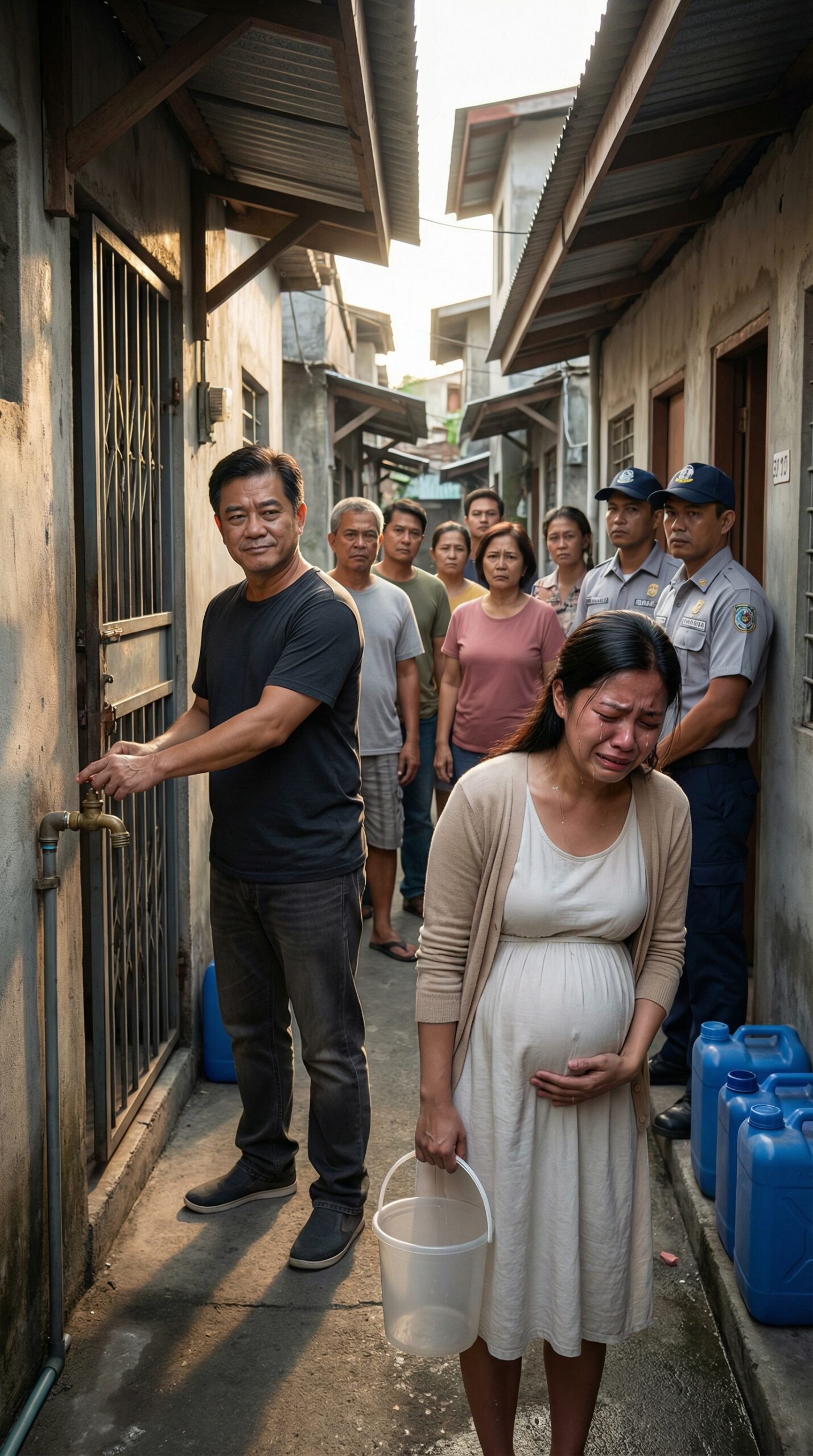 Hindi na kailangan pang sigawan ni Mira si Arturo. Sapat na ang pagkakatayo niya roon—namamaga ang mga mata, pagod, mabigat ang tiyan, ngunit hindi na nakatungo. Sa harap ng mga opisyal, agad na pinabuksan ang balbula, kinunan ng litrato ang illegal padlock sa utility box, at sinabihang haharap si Arturo sa reklamo ng coercion, illegal water control, at pangha-harass sa isang buntis na residente. Ang gate na dati niyang tinatayuan na parang trono ay biglang naging dingding ng kahihiyan niya.
