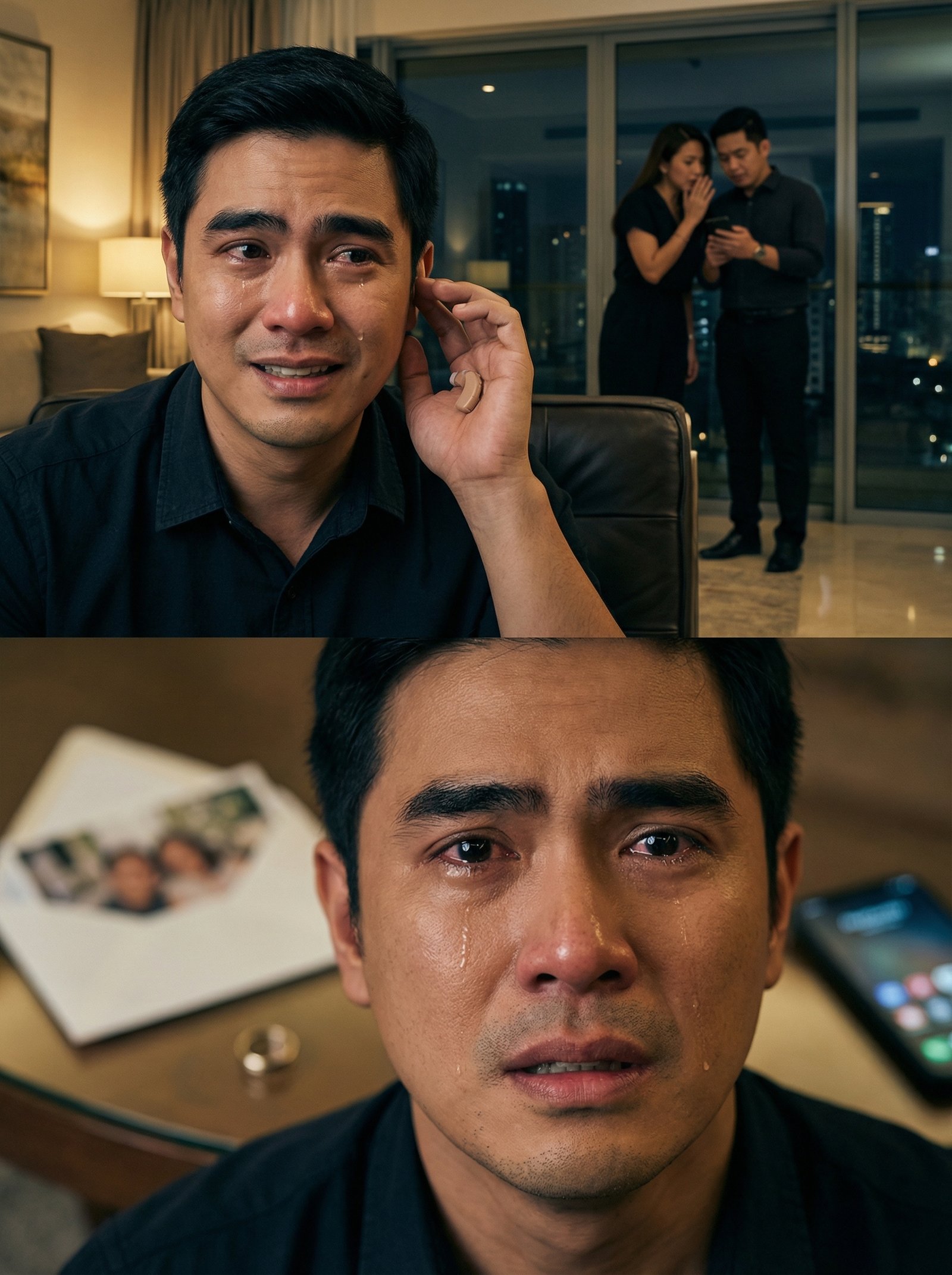 Sa isang condo na mataas ang bintana at mas mataas ang mga sikreto, may isang lalaking milyonaryo na nakaupo sa sofa, nanginginig ang panga, tumutulo ang luha—habang ang kamay niya’y nakadikit sa tainga na parang may inaayos na hearing aid. Sa likod niya, sa ilalim ng malamlam na ilaw, may dalawang taong nagbubulungan habang nakatitig sa cellphone… at hindi nila alam, bawat salitang lumalabas sa bibig nila ay parang granadang sumasabog sa loob ng dibdib ng lalaking akala nila’y hindi nakakarinig. Ang tanong: hanggang kailan niya kayang magpanggap na bingi, kung ang naririnig niya ay unti-unting pumapatay sa kanya?