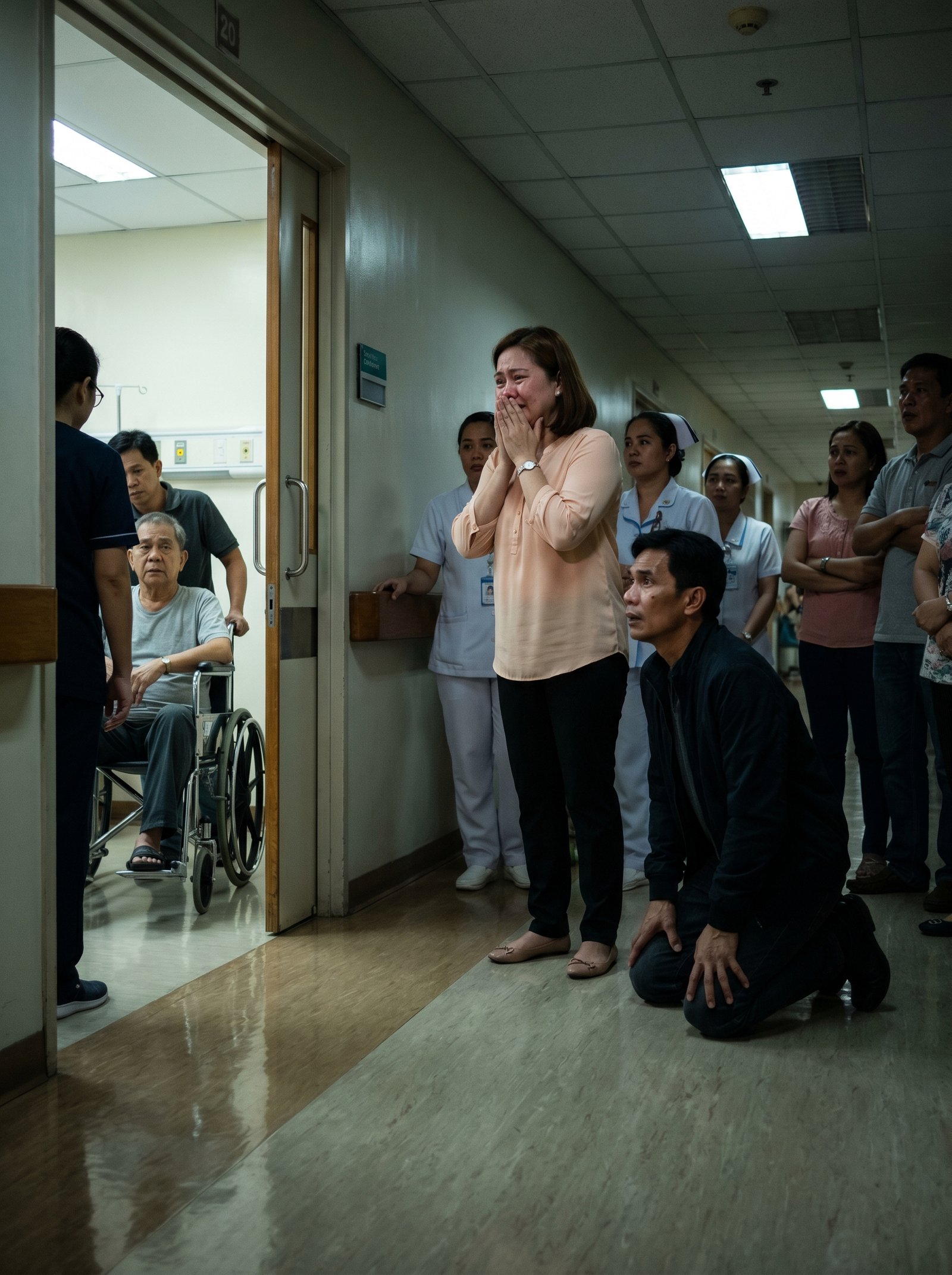 Hindi na maalala ni Victor kung paano siya napaluhod. Ang alam lang niya, bigla na lang siyang nasa malamig na sahig ng ospital, kapwa tuhod nakadikit sa makintab na tiles, habang ang mga ilaw sa mahabang pasilyo ay tumatama sa mukha ng asawa niyang si Liza na hindi na mapigilan ang pag-iyak.