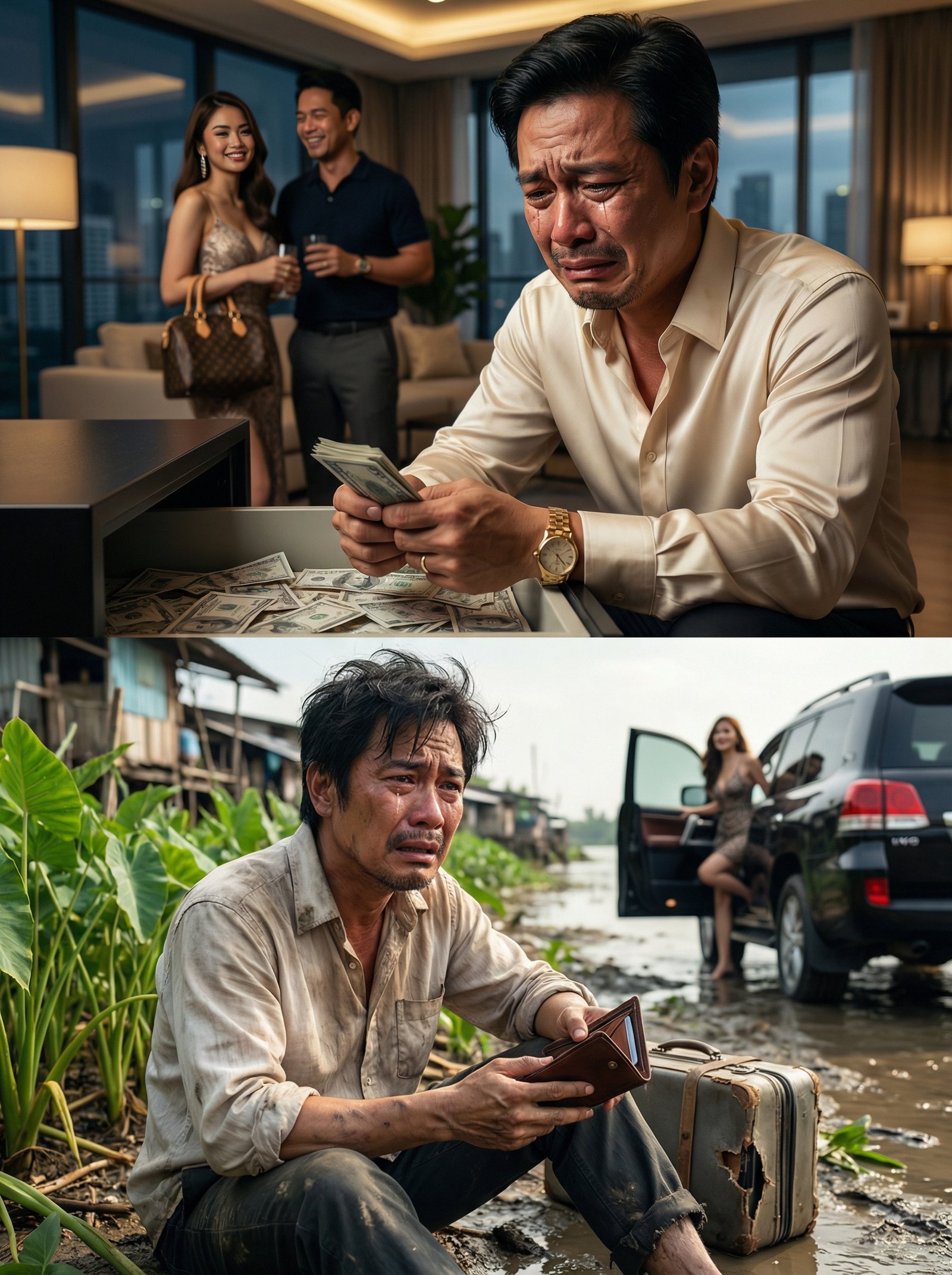 May mga lalaking akala nila ang pera ang susi sa lahat—hanggang sa isang gabi, mapatunayan nilang may mga taong mas magaling magnakaw kaysa magtrabaho. Sa loob ng isang mamahaling condo na may malalaking bintana at ilaw na warm na parang laging may party, nakaupo ang isang lalaki sa harap ng bukas na drawer na punong-puno ng dolyar. Nanginginig ang kamay niya habang binibilang ang pera, pero ang nangingibabaw sa mukha niya ay hindi saya—kundi takot at pagkasira. May luha siyang hindi niya maipaliwanag, parang biglang nabasa ang sarili niyang pagkatao. Sa likod niya, nakangiting nakikipagbiruan ang isang magandang babae at isang lalaking naka-polo, may hawak pang inumin, parang wala silang ideya sa sakit na bumabalot sa taong katabi nila—o mas masakit pa, parang alam nila at iyon ang gusto nila. Ang tanong ay iisa: paano ka nagiging mayaman… pero nagiging tanga sa harap ng taong marunong magpanggap?