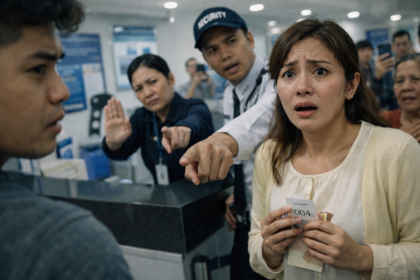 Sa mismong sandaling dumulas ang pinto ng bangko at tumunog ang maliit na “ding,” parang sabay na lumingon ang buong linya kay Amelia—babaeng payat, maputla, at halatang galing sa mahabang biyahe. Nak...