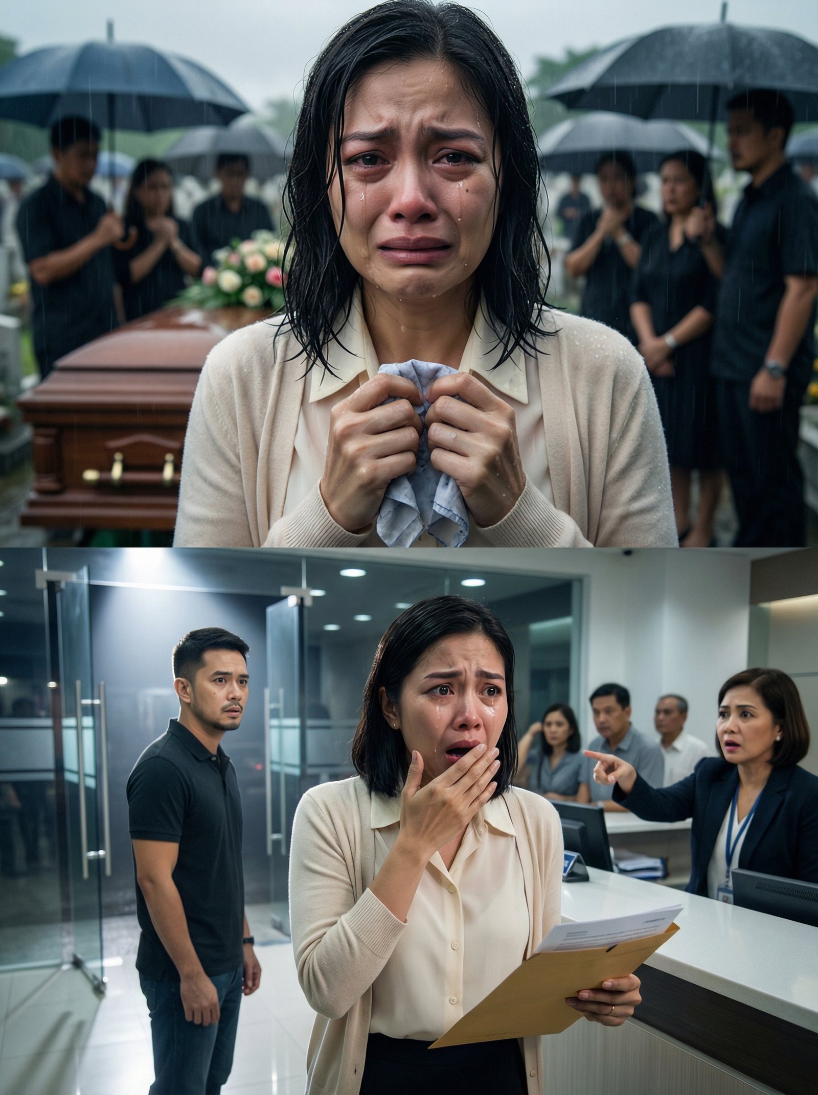 May mga luha na hindi mo kayang pigilan kahit anong lakas ng loob mo—lalo na kapag ang kabaong ay dahan-dahang nilulubog sa lupa at ang ulan ay parang nakikiramay, pero parang dinudurog ka rin. Sa sementeryo, nakatayo si Hana—basang-basa, namumula ang mata, at mahigpit na hawak ang panyo na halos mapunit sa pagpisil. Sa likod niya, mga itim na payong, mga mukhang walang masabi, at mga bulong na mahina pero malinaw: “Kawawa.” “Ang bata pa.” “Biglaang atake daw.” Sa harap niya, ang kabaong na may bulaklak sa ibabaw—kabaong ng asawa niyang si Enzo, lalaking minsang nangakong “kahit anong mangyari, uuwi ako.” Ngunit ngayon, walang uwi. Walang yakap. Walang boses. Tanging tunog ng patak ng ulan sa kahoy at huni ng dasal na parang lumulutang. “Hana,” mahina niyang bulong sa sarili, “tanggapin mo na.” Pero paano tatanggapin kung ang puso mo mismo ang tumatanggi? Ilang beses niyang tinanong ang doktor, ang pulis, ang morgue: “Sigurado ba kayo?” Ilang beses siyang naghanap ng butas sa kwento: “Baka nagkamali.” Ngunit bawat sagot ay pareho: “Patay na po.” Kaya heto siya ngayon, nakatingin sa lupa na hinihigop ang huling pag-asa niya. Nang matapos ang libing, umuwi siya sa bahay na may amoy ng damit ni Enzo. Sa bawat sulok, may alaala: tasa ng kape na paborito nito, relo sa mesa, at isang jacket na nakasabit pa rin sa likod ng pinto na parang naghihintay. Sa gitna ng katahimikan, sumabog ang reality: may mga papeles siyang kailangang asikasuhin.