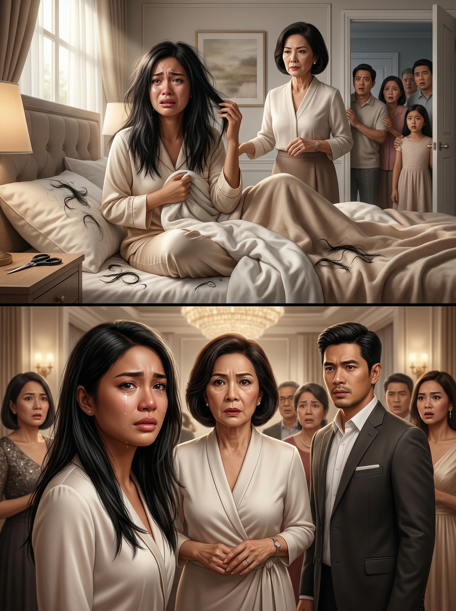 Madaling-araw nang magising si Lara sa kakaibang lamig sa leeg at balikat. Noong una, inisip niyang baka lang nalaglag ang kumot niya. Ngunit nang maramdaman niyang may magaspang at hindi pantay sa gilid ng kanyang buhok, agad siyang napabalikwas. Nanginginig ang kamay niyang humawak sa maikling hiblang hindi dapat naroon. Nang ibaba niya ang tingin, para siyang binagsakan ng langit. Sa ibabaw ng puting kumot, sa unan, at sa sahig sa tabi ng kama ay nakakalat ang maraming piraso ng kanyang buhok. Hindi iyon simpleng nalagas. Hindi iyon aksidente. May gunting sa may mesita, bahagyang bukas, at ang ilang hibla ay parang sadyang iniwan para makita niya. Napahagulhol siya sa tindi ng pagkabigla. Sa pinto, naroon si Doña Celine, nakasuot pa ng maayos na pambahay, malamig ang mukha, at sa likod nito ay nakasilip ang ilang miyembro ng pamilya na halatang nagulat sa eksena. Ngunit ang mas nagpayanig kay Lara ay hindi ang gulat sa mga mukha nila. Kundi ang katahimikang lumabas sa bibig ng biyenan niya: “Mas maayos ka nang tingnan ngayon.”