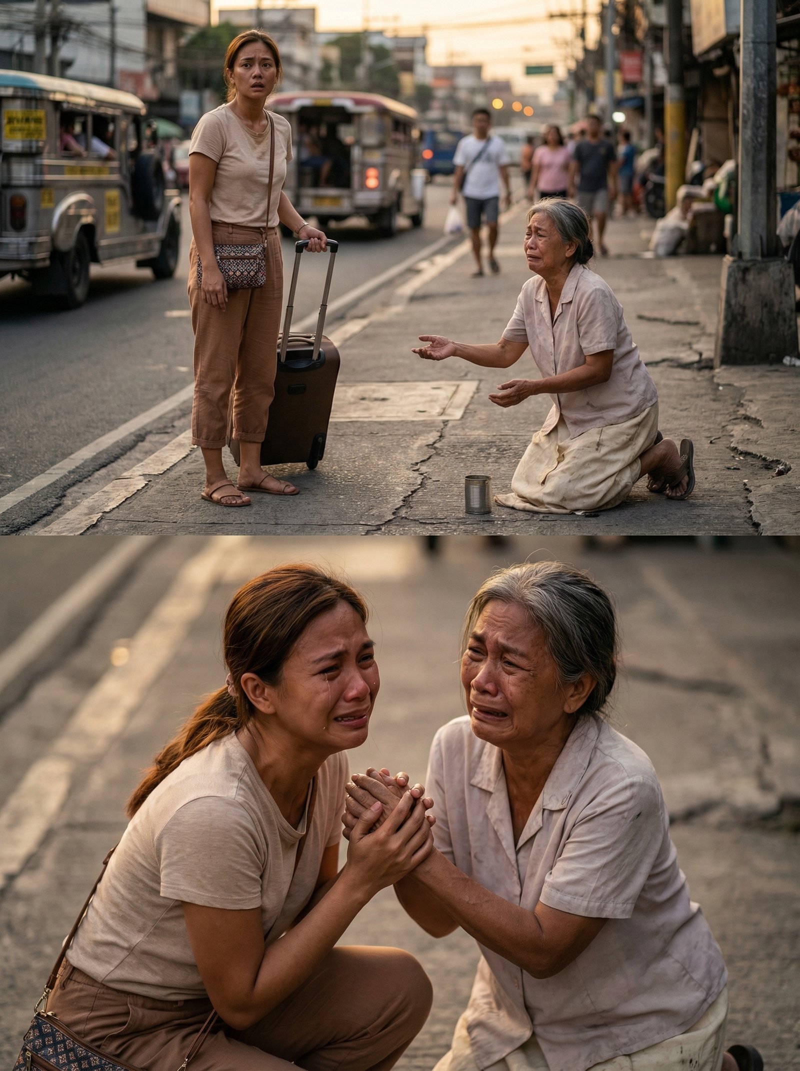 Si Aling Nena, ang babaeng minsang nagsakripisyo ng lahat para mapakain siya, ang babaeng kahit nilalagnat ay pumapasok pa rin sa paglalaba, ang babaeng hindi natutong unahin ang sarili, ay ngayo’y nakaluhod at halos hindi na makilala sa sobrang payat at dumi ng kalagayan. Ang lata sa tabi nito ay may ilang baryang parang insulto sa dangal ng isang inang buong buhay nagpakahirap nang marangal. Nang tuluyang makalapit si Mariel, nakita niya ang mga gasgas sa braso ng matanda, ang kupas na blusa, at ang mga paang tila ilang araw nang walang maayos na tsinelas. Hindi na niya napigilan. Humagulhol siya sa gitna ng bangketa.