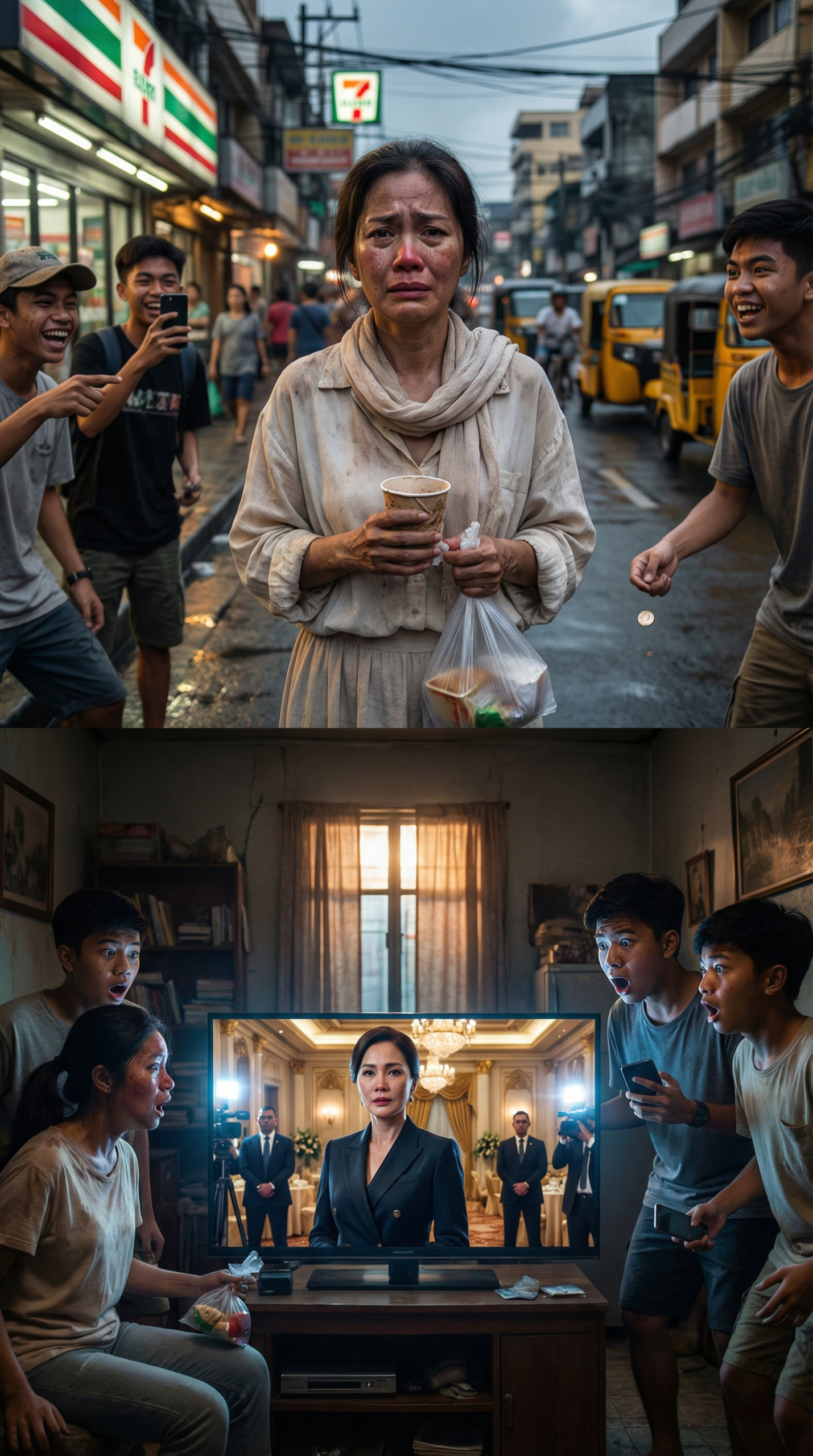 Sa TV, ipinakita ang lumang larawan ng bilyonarya—mas bata, pero ang mga mata… pareho. Parehong mata ng babaeng binastos nila kanina. Parehong hugis ng mukha. Parehong nunal sa gilid ng pisngi. Parehong sugat na pilit tinatakpan ng tapang.