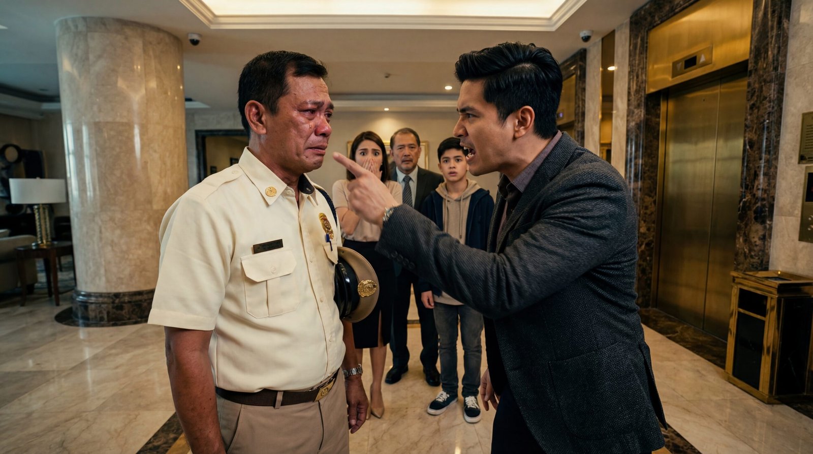 May mga salitang hindi mo na mababawi kahit gaano mo gustong lunukin pabalik. Sa isang lobby na kuminang sa marmol at ilaw—sa harap ng gintong pinto ng elevator—isang daliri ang nakaturo sa mukha ng isang security guard na nanginginig, habang ang luha niya’y dumadaloy na parang ayaw nang tumigil. At sa bawat sigaw ng lalaking naka-blazer, parang may pinapatay na dignidad sa bawat segundo. Ang tanong: hanggang saan aabot ang kayabangan bago ito bumalik bilang sumpa?
