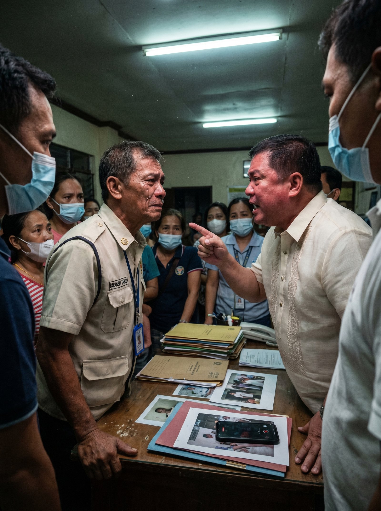 Hindi nagsasalita si Mang Ernesto habang itinutok sa mukha niya ng opisyal ang nanginginig na daliri nito. Sa ilalim ng malamig na ilaw ng fluorescent lamp, lalong lumalim ang mga guhit sa kanyang noo at pisngi, parang bawat kulubot ay may iniingatang lihim na matagal nang binubuhat. Nakatayo siya sa kabilang dulo ng lumang mesang kahoy, suot ang kupas niyang uniporme ng barangay tanod, may ID na nakasabit sa dibdib, at ang dalawang palad niya ay mariing nakadikit sa gilid ng mesa para lang hindi mahalatang nanginginig din siya. Sa paligid nila, nagsisiksikan ang mga taong naroon sa opisina—mga empleyado, mga usisero, mga takot magsalita. Karamihan ay naka-face mask. Lahat ay nakatingin. Walang gustong pumagitna. Walang gustong mabalingan ng galit ng lalaking nasa harap ni Mang Ernesto.