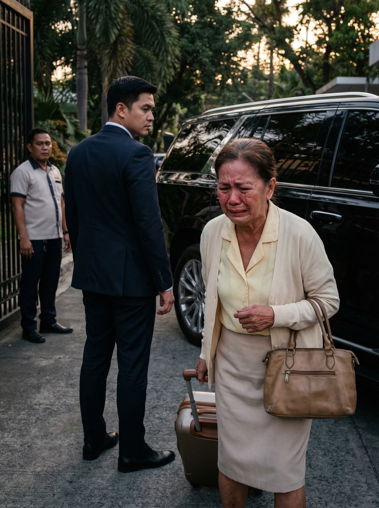 Tahimik ang hapon sa harap ng mataas na gate ng nursing home, pero mabigat ang hangin na parang may masamang balitang naghihintay sumabog. Sa gilid ng itim na SUV, nakatayo ang isang matandang babae na halos hindi na makatayo nang tuwid sa bigat ng sama ng loob. Namumugto ang mga mata niya. Nanginginig ang mga kamay na may hawak na handbag at maliit na maleta. Ang cream niyang bestida at manipis na cardigan ay lalong nagpalabas ng kahinaan niya sa ilalim ng lumalamig na liwanag ng hapon. Sa di-kalayuan, tahimik na nakatingin ang guwardiya sa gate, pero halatang ayaw makialam. Sa harap ng matandang babae, nakatalikod ang anak niyang si Franco—plantsado ang suit, matigas ang panga, at parang mas abala sa sarili niyang galit kaysa sa pag-iyak ng babaeng minsang nagluwal sa kanya.