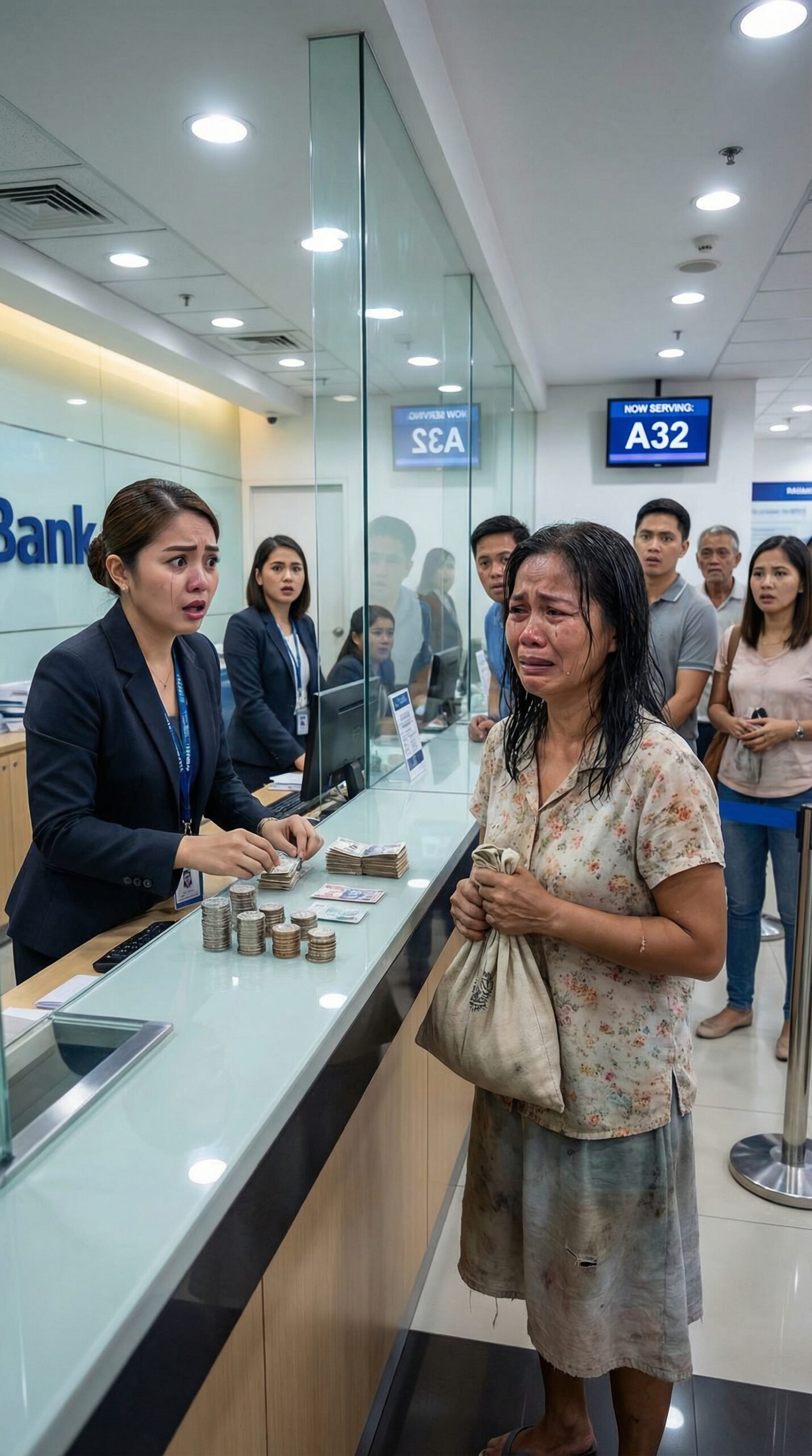 Mula sa gilid ng bangko, lumabas si Manager Karla—nakapamewang, plantsado ang blazer, at matalim ang tingin. Isang tingin lang niya sa basang sahig na tinatapakan ni Aling Nena, saka sa supot ng baryang nasa counter, ay parang sapat nang iparamdam sa babae na hindi siya bagay doon.