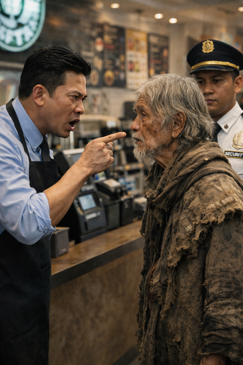 May mga taong sanay manlait dahil akala nila ang kahirapan ay kapintasan at ang tahimik na pagtitiis ay tanda ng kawalan ng halaga—pero sa isang abalang umaga sa loob ng isang mamahaling café, isang manager ang nagkamaling tawaging basura ang matandang babaeng tahimik lang na nakapila, at sa harap ng lahat ng customer na nakatingin, hindi niya alam na ang hinahamak niyang mukhang hamak ang siya palang magpapaluhod sa yabang niyang matagal nang hindi natitinag.