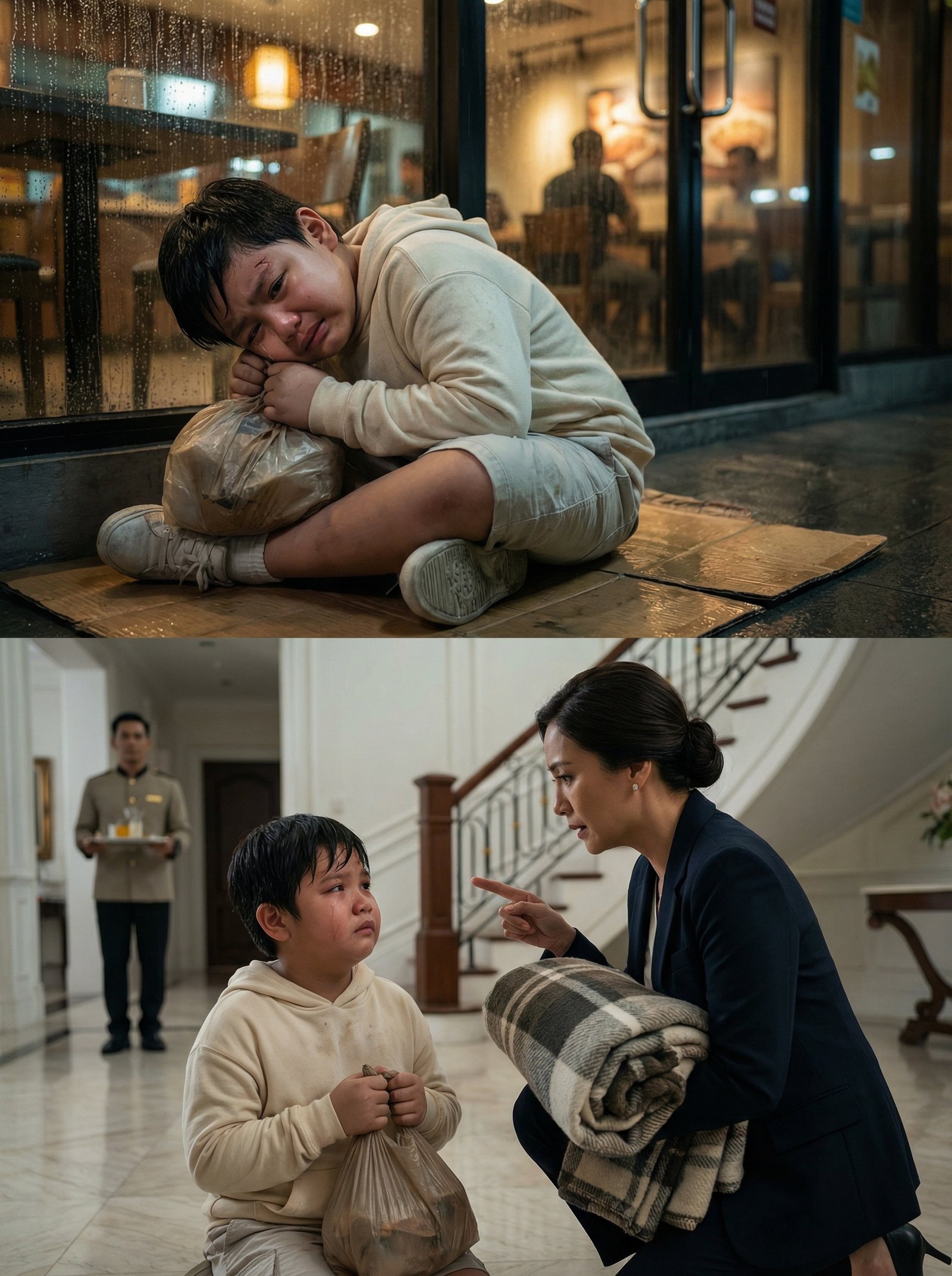 Sa gabi na ang ulan ay parang walang planong tumigil, may batang yumakap sa supot ng pagkain na parang iyon na ang huling pader laban sa lamig at gutom. Nakaupo siya sa karton sa tapat ng salaming pinto ng isang restaurant—sa loob, may ilaw, may init, may mga taong kumakain na parang normal lang ang mundo. Sa labas, ang bata ay nanginginig, namumugto ang mata, at ang luha niya’y humahalo sa patak ng ulan sa salamin. Ang tanong: sino ang makakapansin sa kanya bago siya tuluyang lamunin ng gabi?